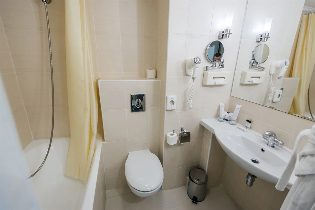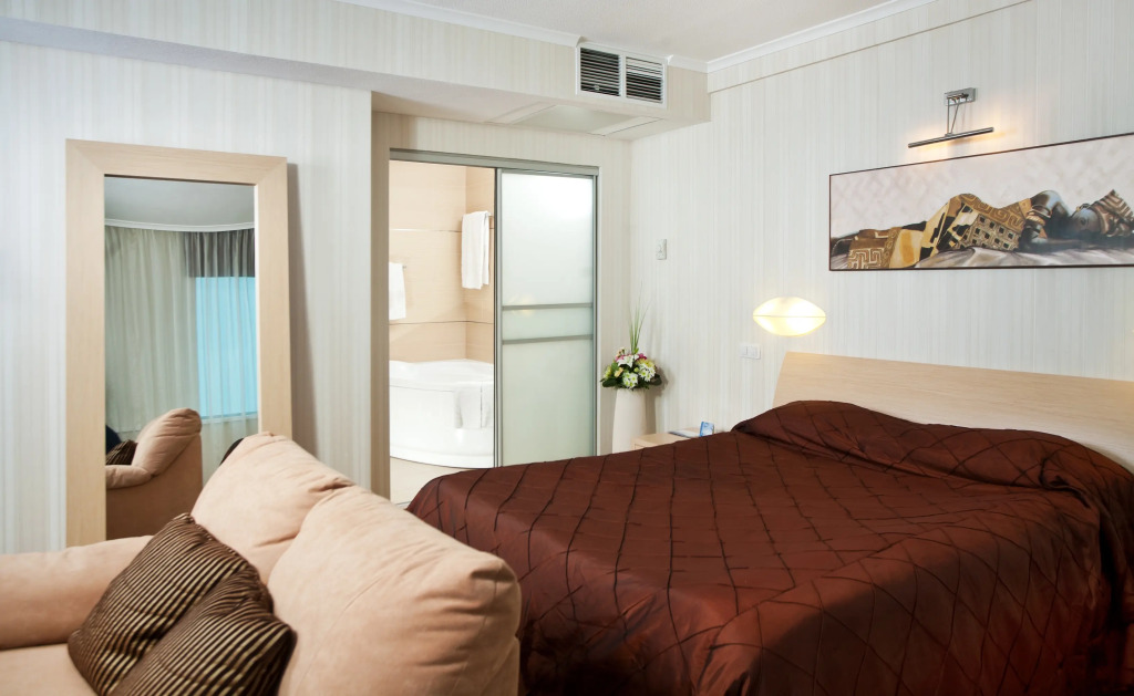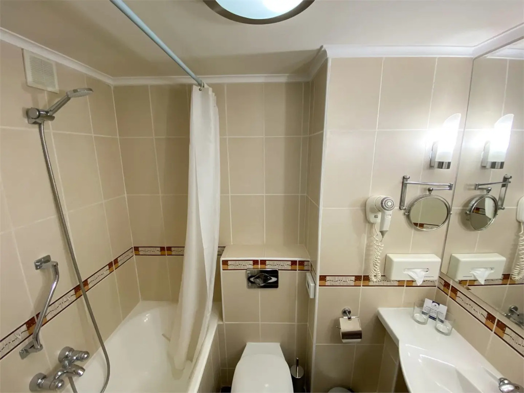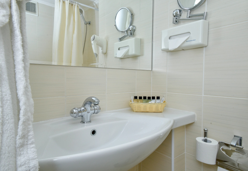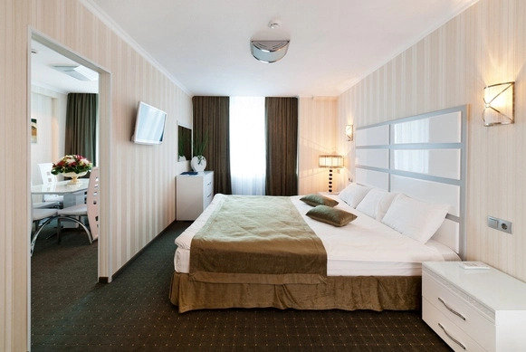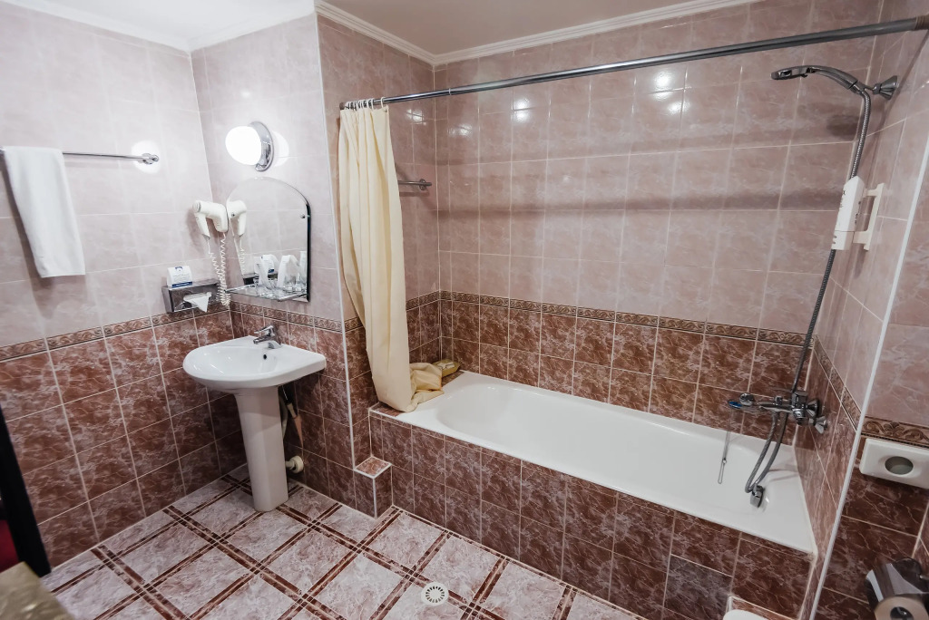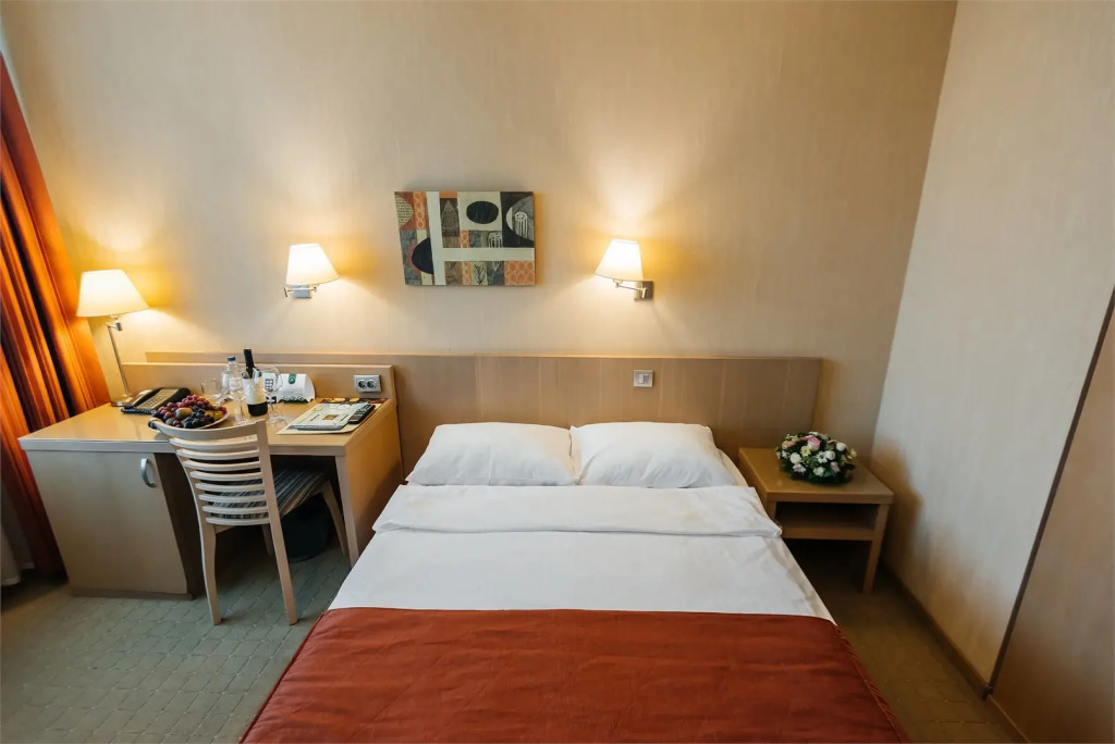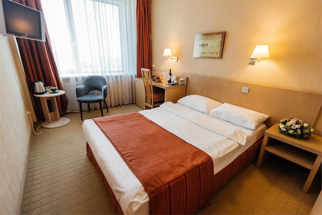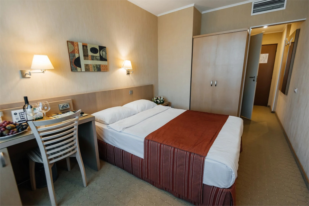 В номере гостей ждут телевизор и халат. Оснащение зависит от выбранной категории номера.