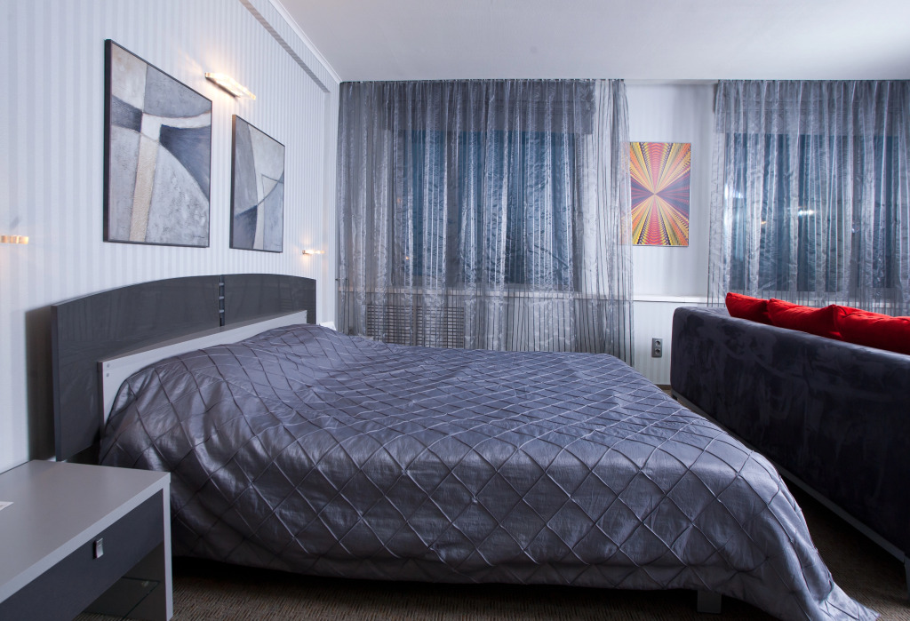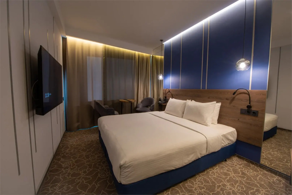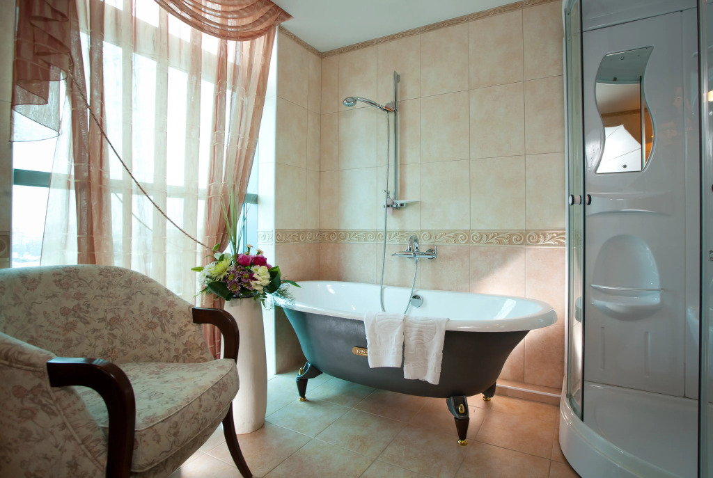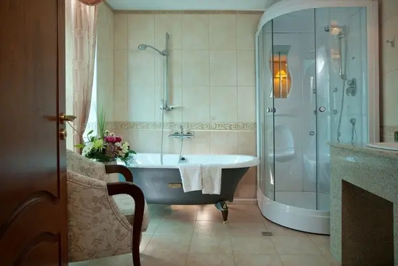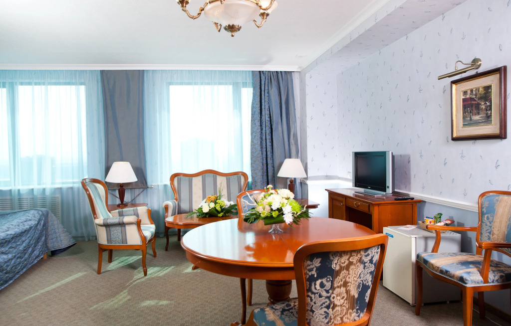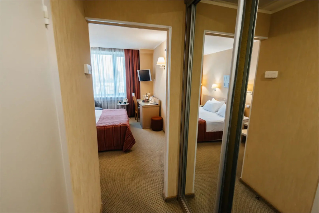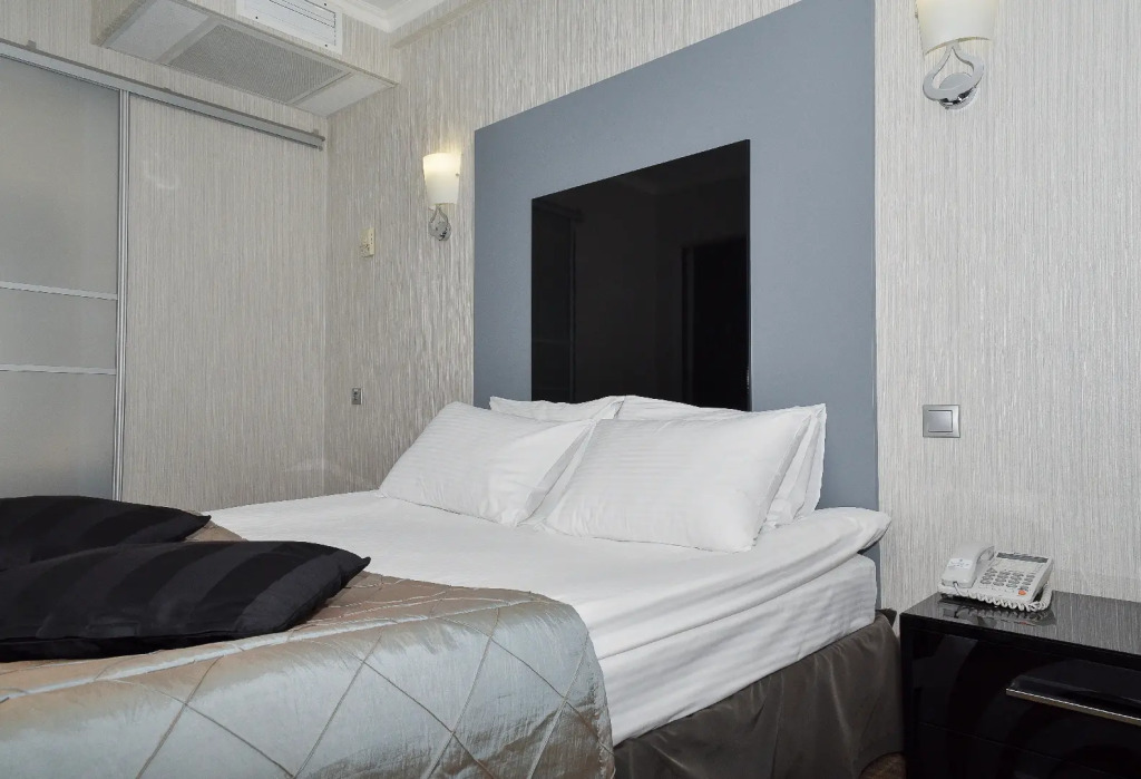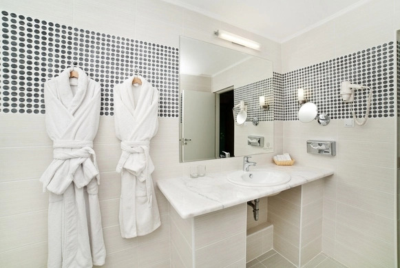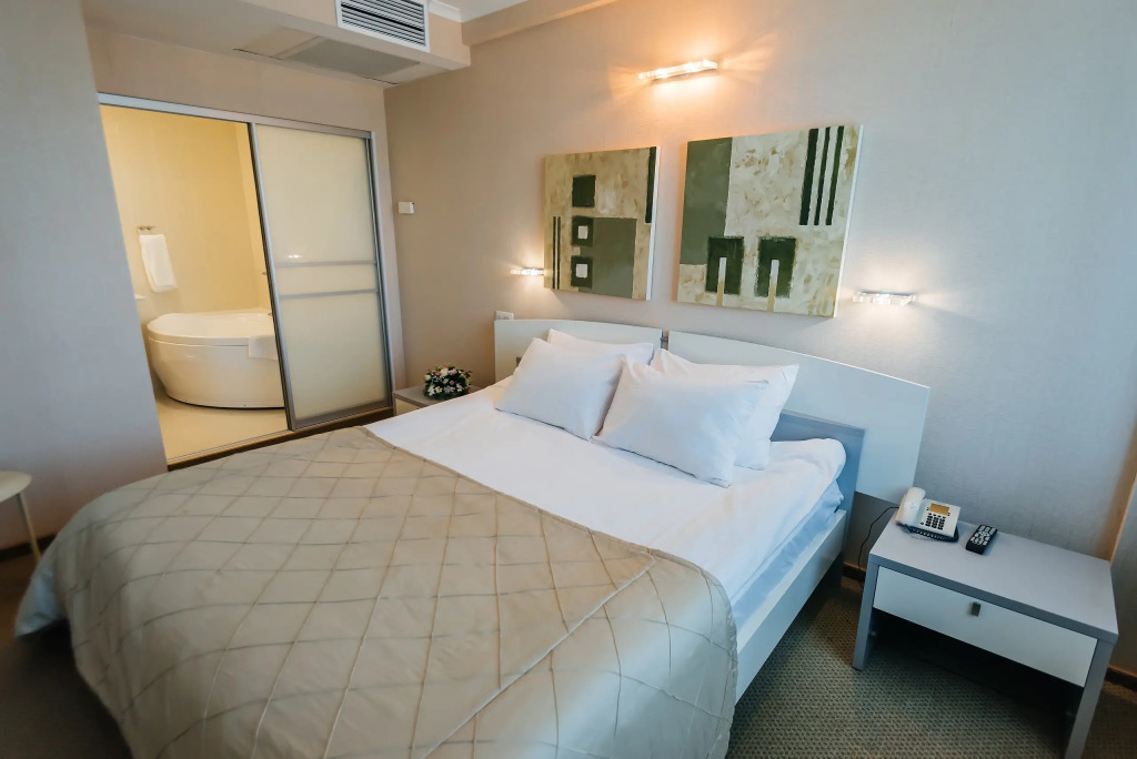 В номере гостей ждут телевизор и халат. Оснащение зависит от выбранной категории номера.
