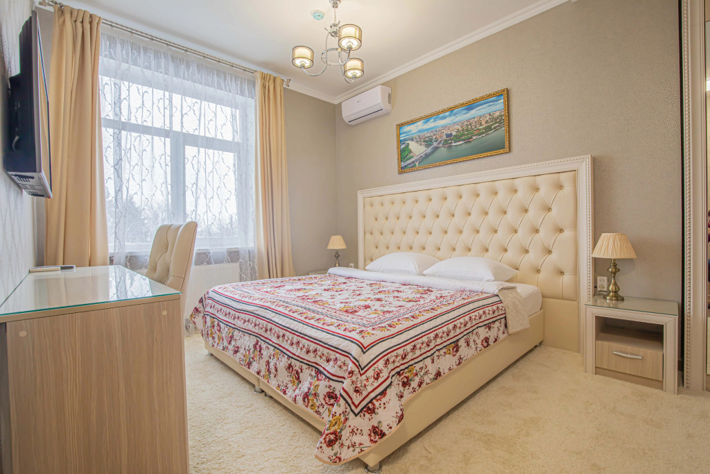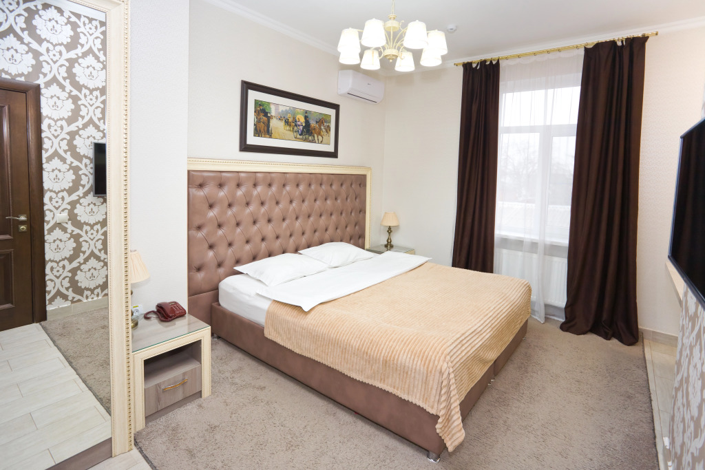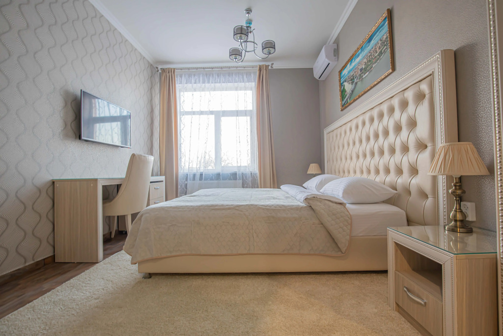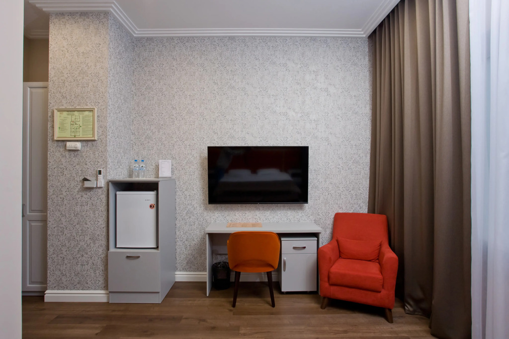 В номере есть телевизор, мини-бар, средства гигиены, тапочки и халат.