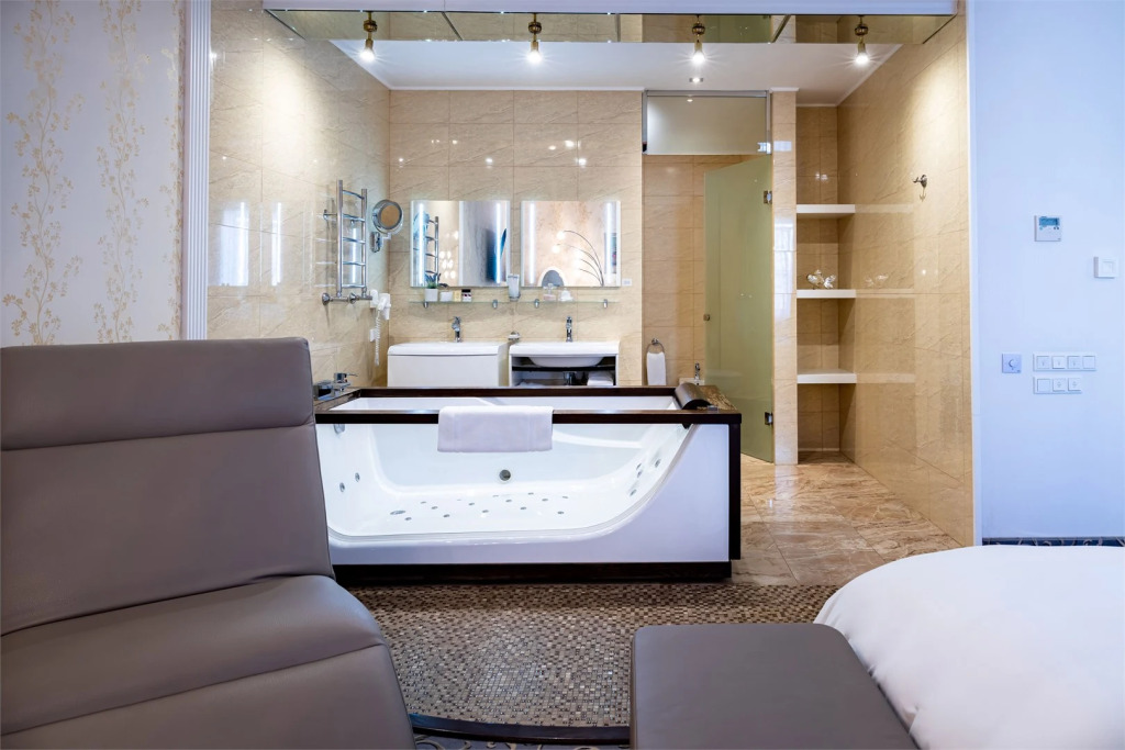 На территории отеля функционируют ресторан европейской кухни, спа-центр, фитнес-центр.