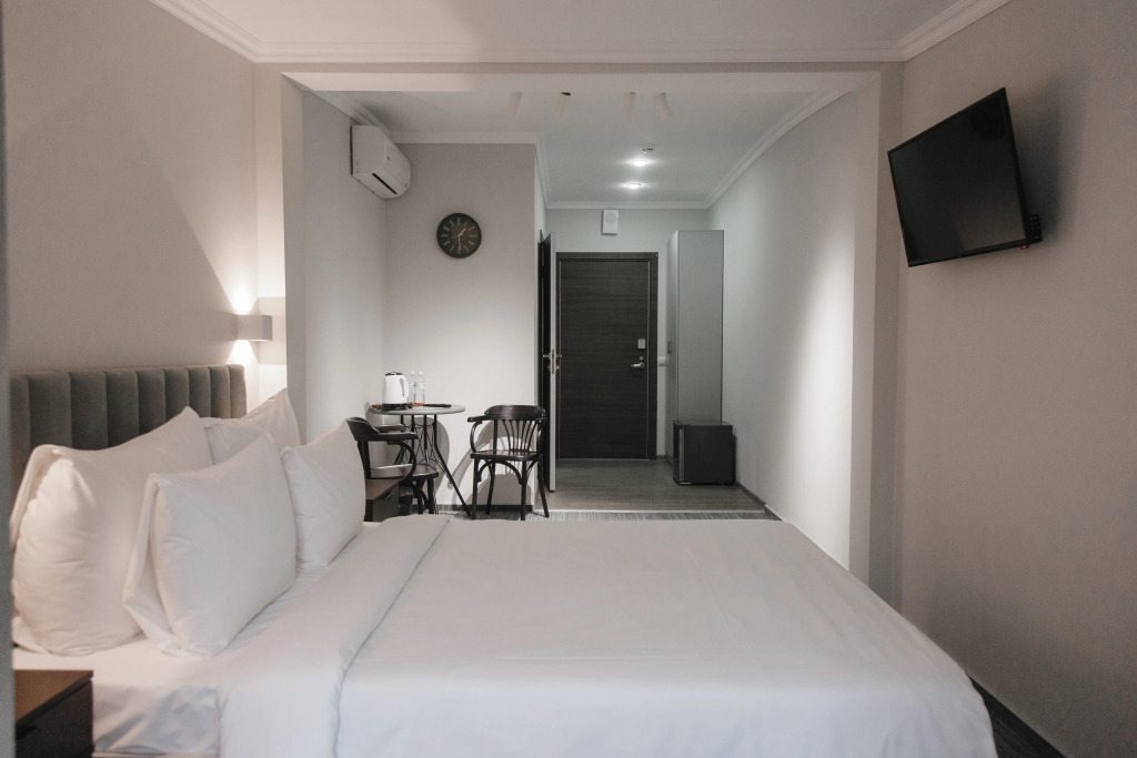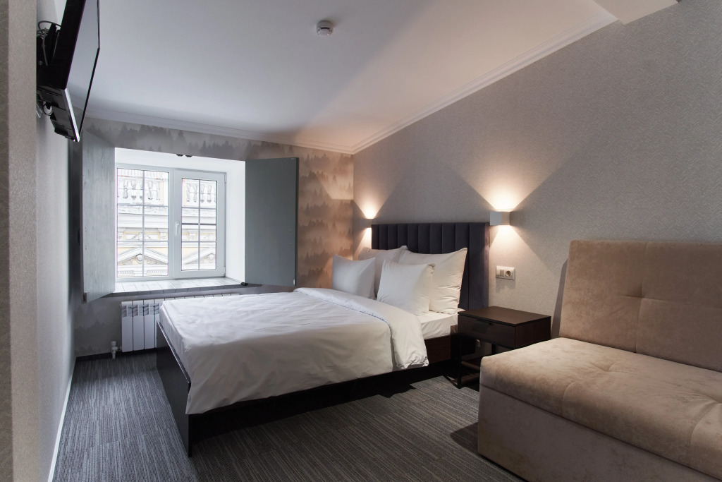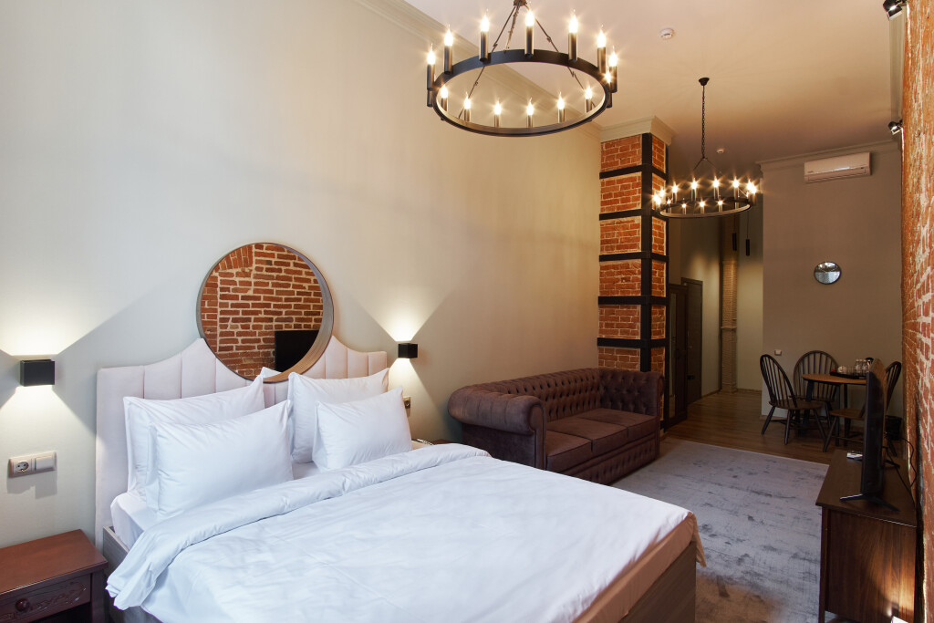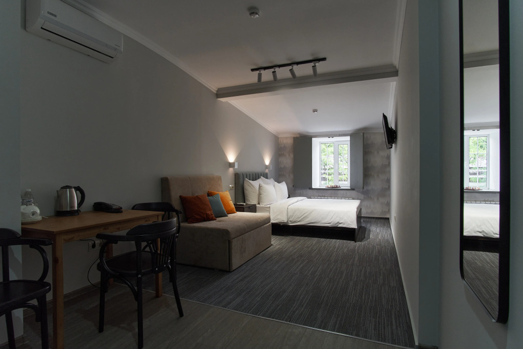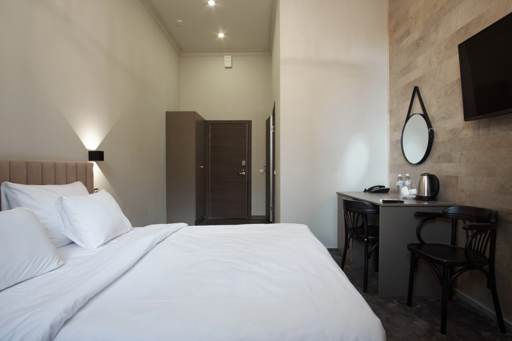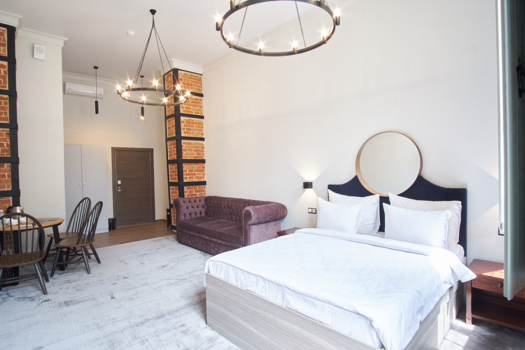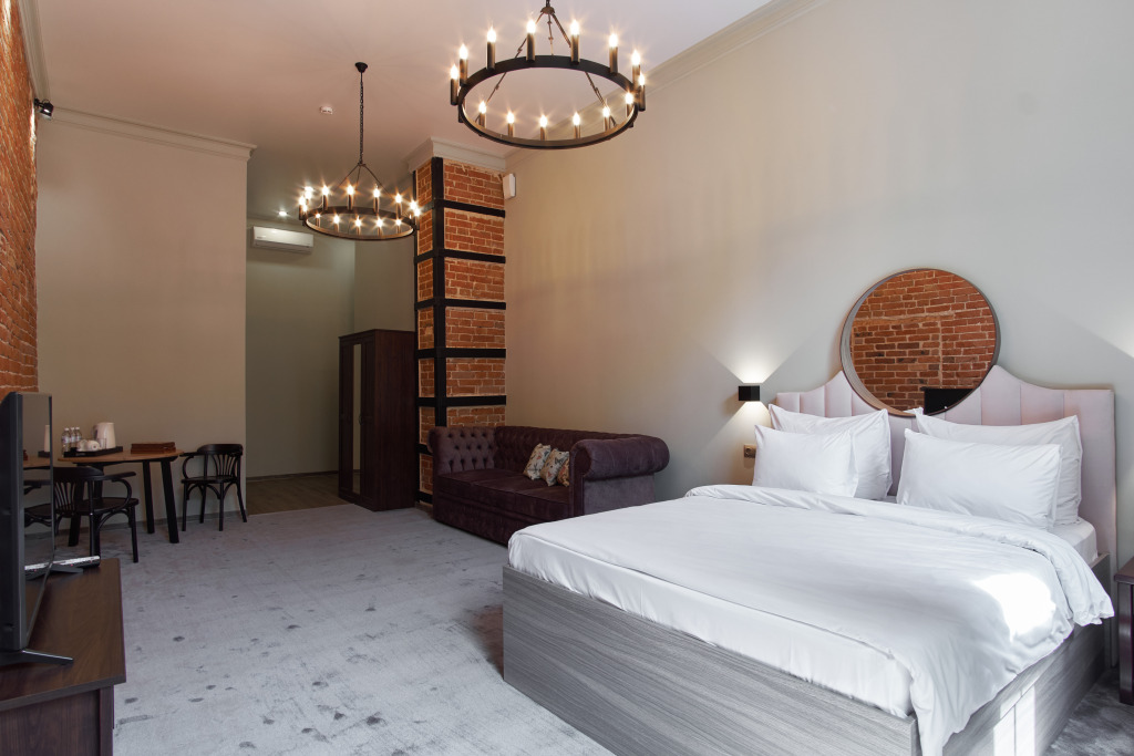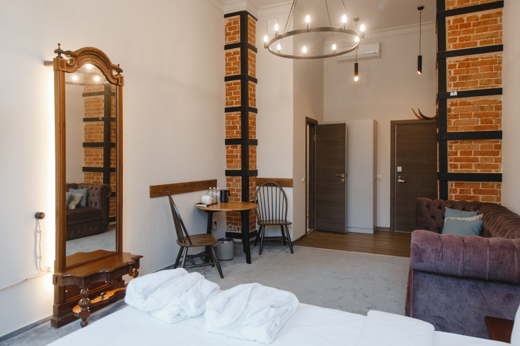 В отеле 23 номера шести разных категорий, оформлены в оригинальном стиле — эклектика. Сохранены исторические стены, подчеркнутые современными деталями, из окон номеров открывается вид на памятник культурного наследия или тихий внутренний дворик.