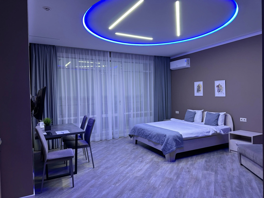 В номере гостей ждут телевизор и халат. Оснащение зависит от выбранной категории номера.