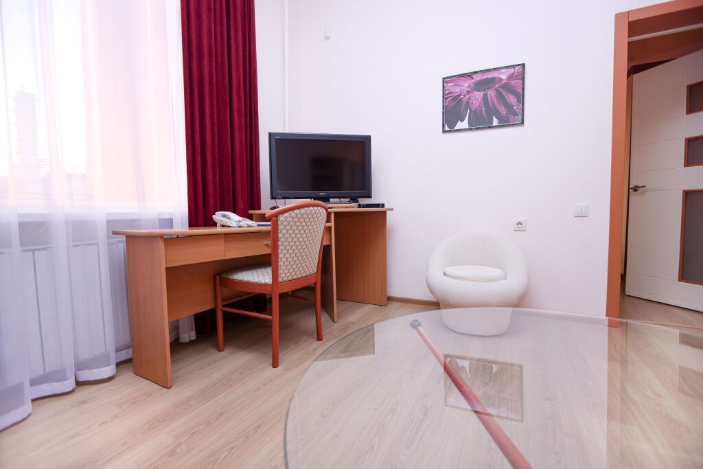 Номер уютно обставлен и оснащён необходимым, чтобы отдохнуть после долгого и насыщенного дня. Имеются телевизор. Перечисленные услуги есть не во всех номерах.