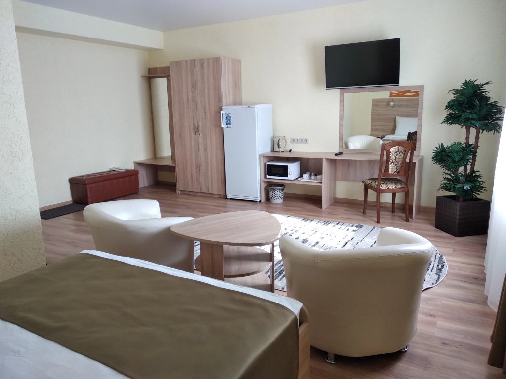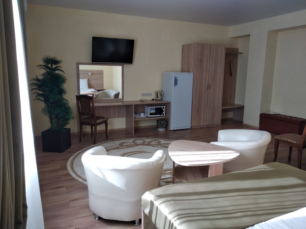 Чтобы вы могли отдохнуть после долгого дня, в номере есть телевизор и халат. Перечисленные услуги есть не во всех номерах.