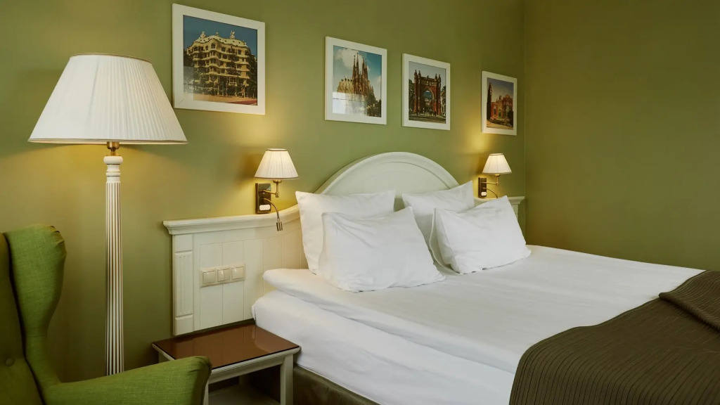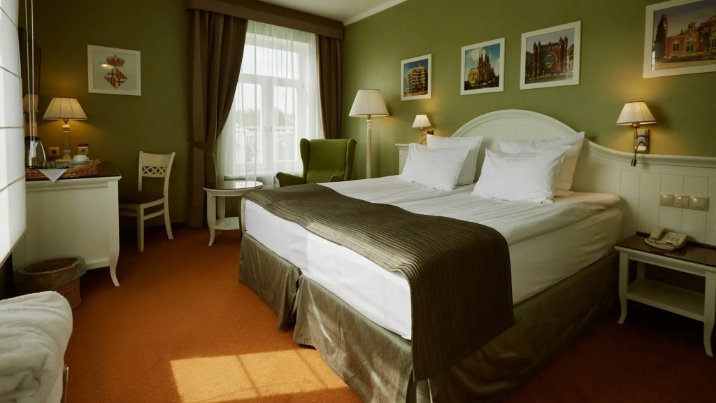 К услугам гостей предлагается 243 номера различной категории. Каждый номер назван в честь одного из известных российских и европейских городов, оформлен их гербами, городскими пейзажами и планами. Все номера оснащены системой климат-контроля, телевизором со спутниковым телевидением, беспроводным доступом в Интернет, халатом, тапочками, сейфом и чайной станцией.