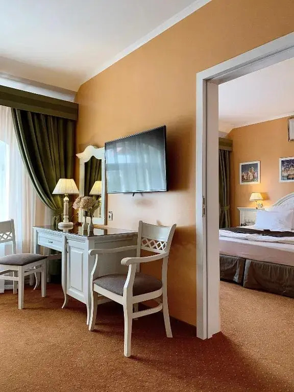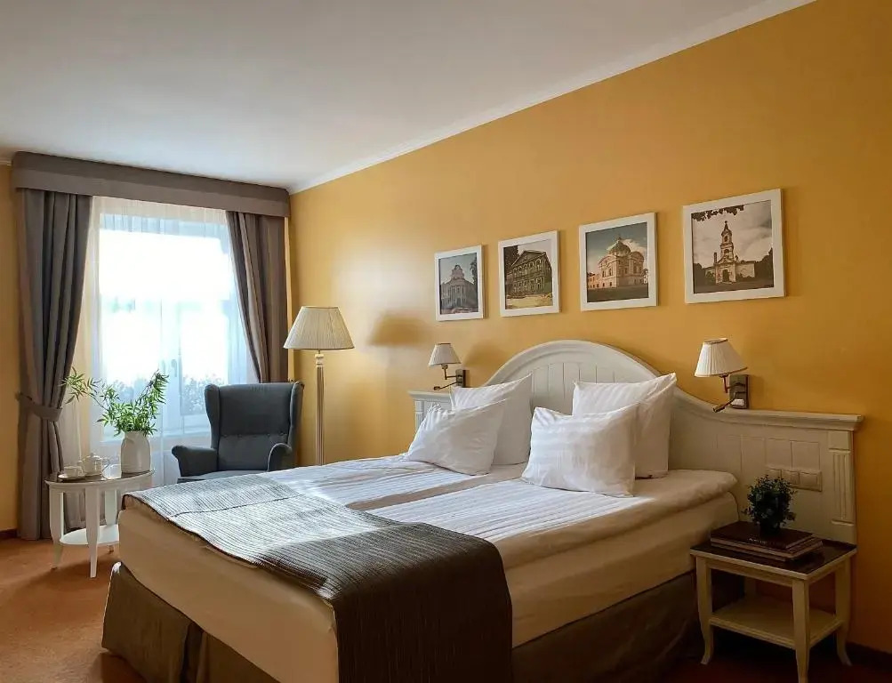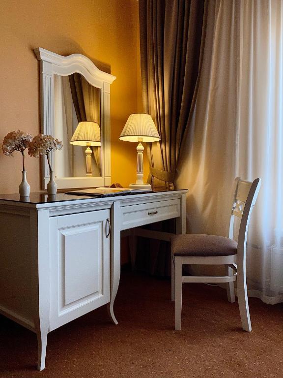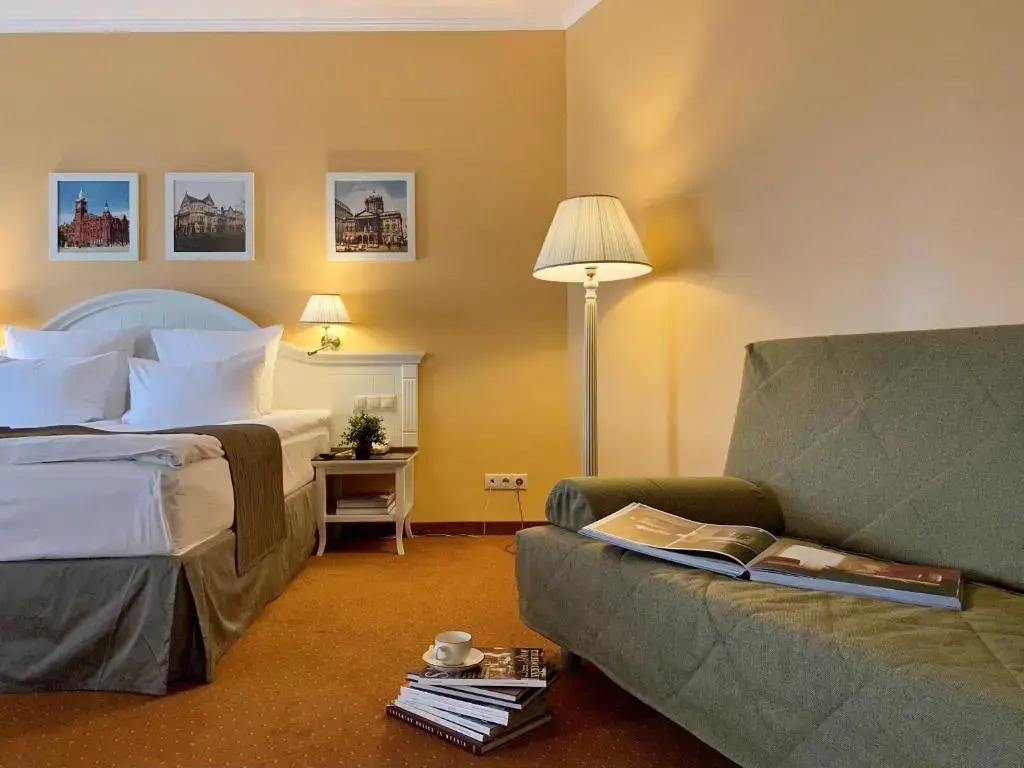 На территории отеля расположены ресторан «Бристоль», ресторан русской кухни «Лыбедь» и кофейня «Кукис», в которых подают закуски, горячие блюда, салаты, импортное пиво, глинтвейн и авторские настойки.