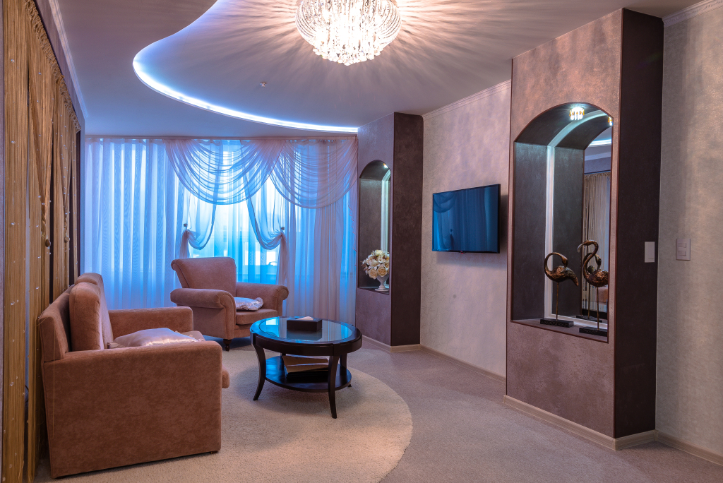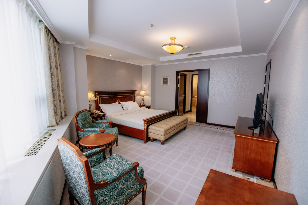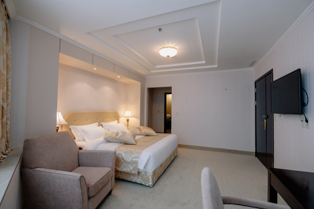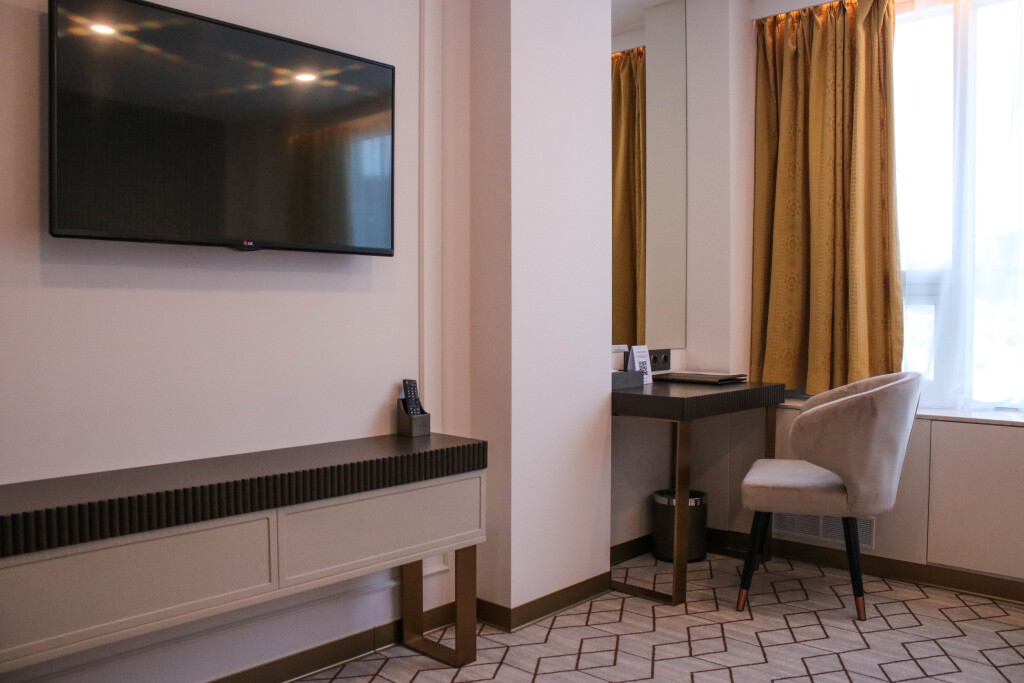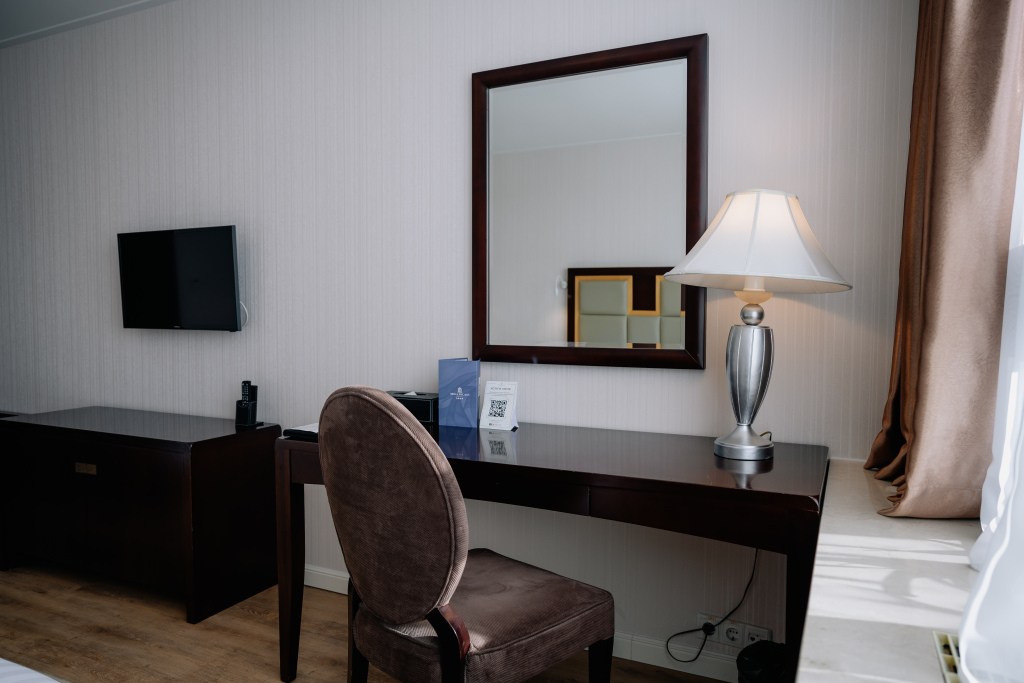 В номере гостей ждут телевизор, мини-бар и халат. Перечисленные услуги есть не во всех номерах.