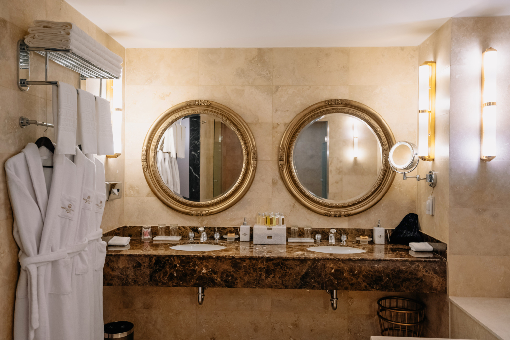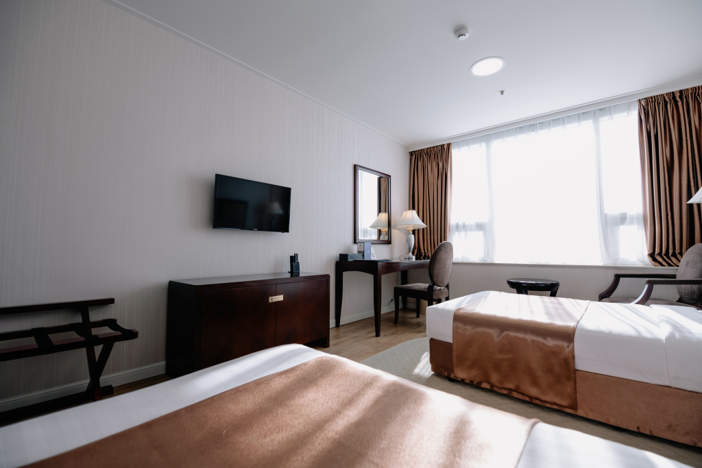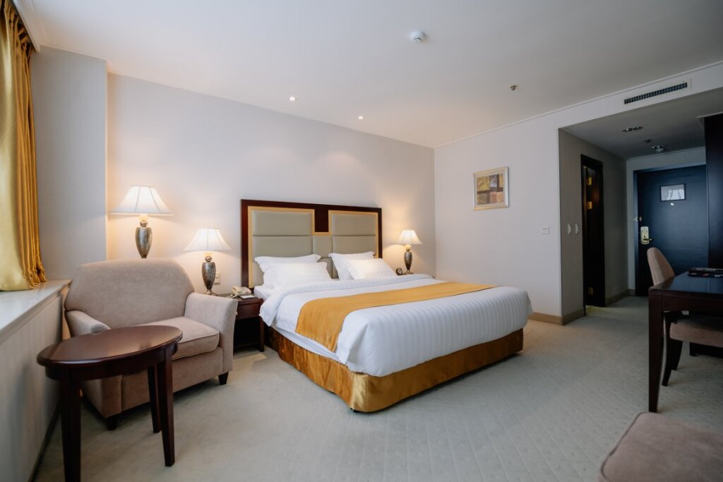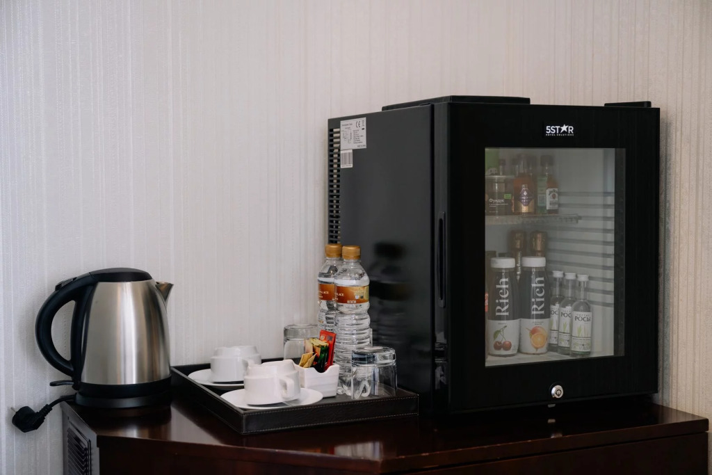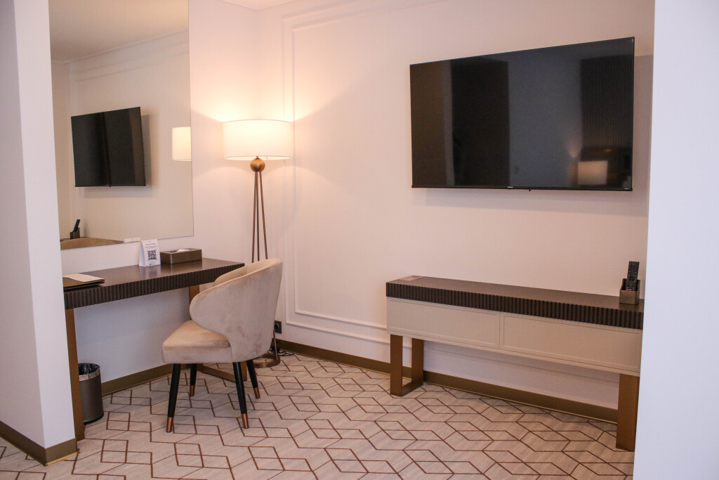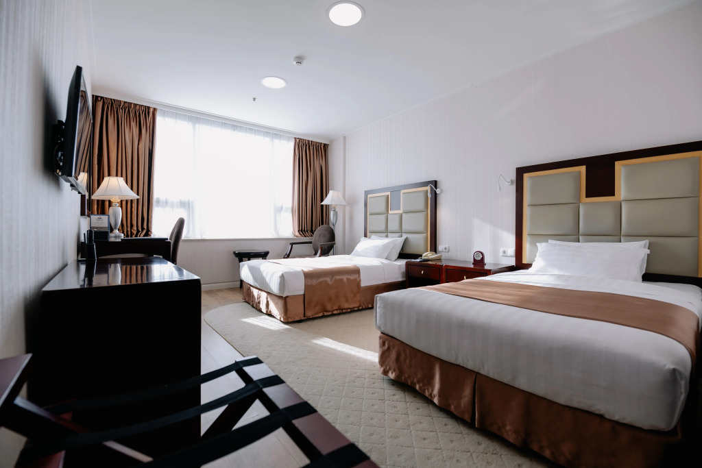 В номере гостей ждут телевизор, мини-бар и халат. Перечисленные услуги есть не во всех номерах.