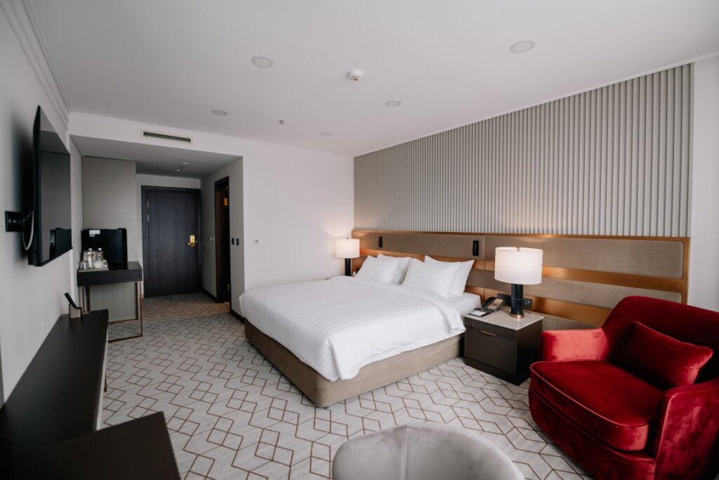 В распоряжении гостей более 160 комфортабельных номеров - просторные дизайнерские пространства, оформленные в светлых тонах, в традициях европейского гостеприимства - от стандартных категорий до президентских апартаментов. В отеле открыты дополнительные этажи номеров, чтобы дать гостям возможность провести восстанавливающие выходные и перезагрузку в стенах отеля.