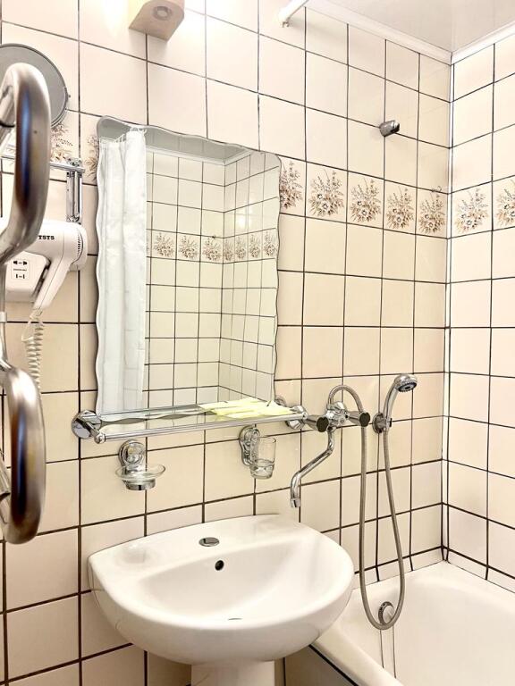 Отель действительно расположен в центре, все в шаговой доступности. Здание отеля, это бывший многоквартирный дом. В отеле есть лифт. Номера большие. Полноценная кухня,оборудована плитой, микроволновкой, вместительным холодильником ванная комната с В комнате не достаточно потолочного освещения. Но мы это исправили включив прикроватные лампы. В прихожей номера не горела лампа, о данной проблеме сказали на ресепшн, надеемся исправят. Проблема практически все отелей это подушки, одеяла и бельё. Подушки медузки, одеяло 2 двоих маленькое и тонкое. Ночью замёрзли, при открытом окне. Белое белье оказалось, больше кофе с молоком, чем белое