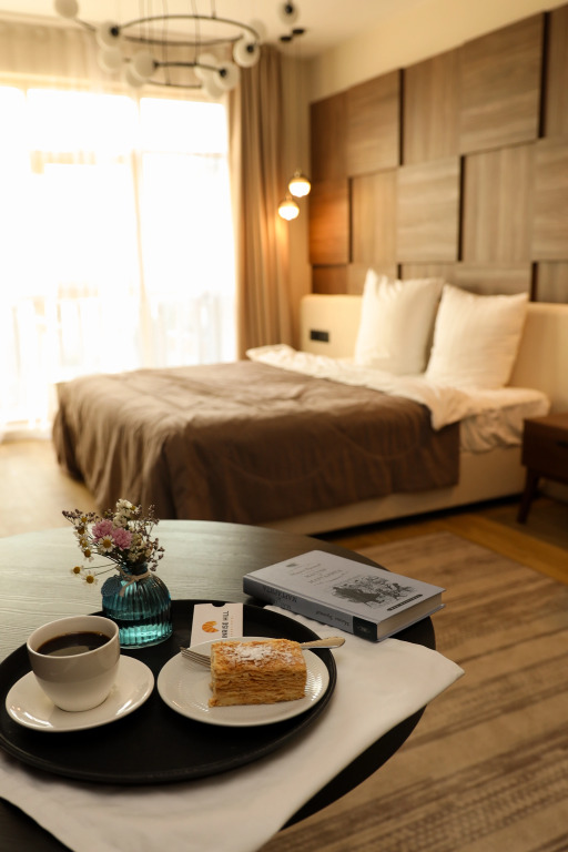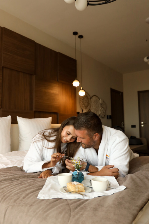 В номере гостей ждут телевизор и халат. Оснащение зависит от выбранной категории номера.