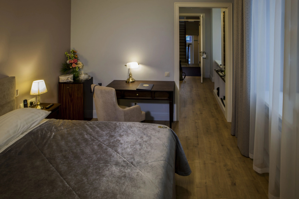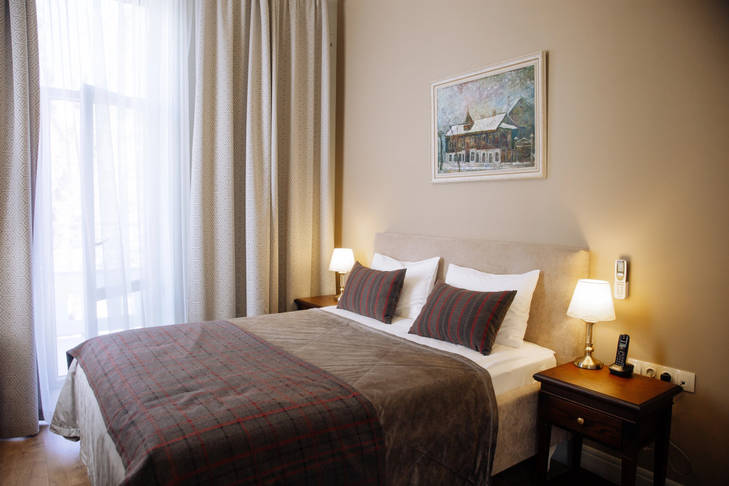 Гостям предлагаются номера трёх категорий комфортности: «Люкс», «Джуниор Сюит» и «Стандарт». Каждый номер представлен в индивидуальном цветовом решении. Интерьеры номеров дополняют картины известных самарских художников и изготовленная на заказ мебель.