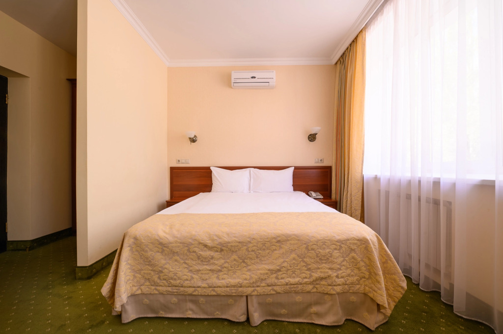 В отеле есть большой выбор номеров, начиная от сегмента «эконом» до класса «люкс». Ортопедические матрасы Serta и сатиновое постельное бельё есть во всех категориях номеров для хорошего сна гостей. Предоставляется бесплатный чай и кофе в номерах всех категорий.