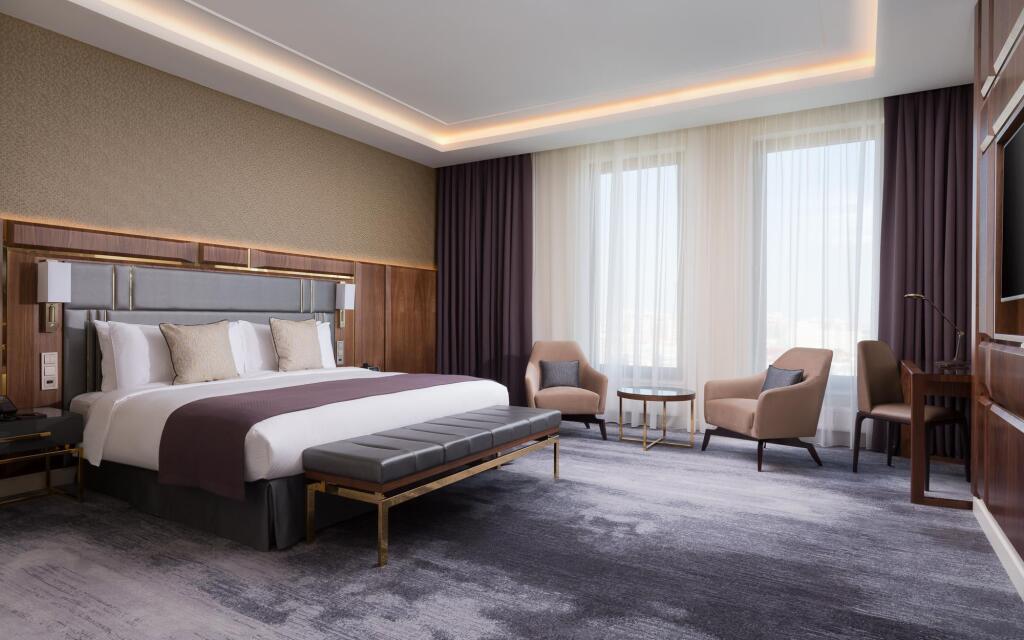 В номере вы найдёте телевизор, мини-бар и халат. Оснащение зависит от выбранной категории номера.