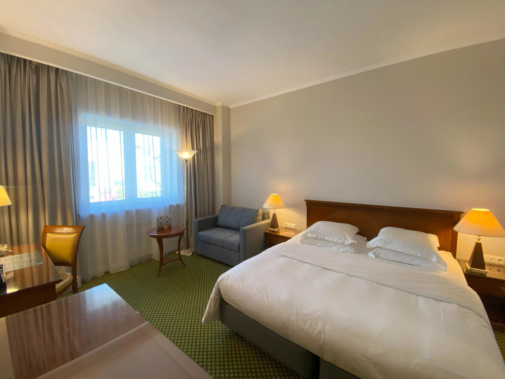 Отель располагает 184 номерами. Гостям предоставляются: кровать с ортопедическим матрасом, ванная комната со всеми необходимыми принадлежностями, телевизор с плоским экраном, беспроводной доступ в Интернет, мини-бар, чайник с наборами чая и кофе на выбор, рабочее место.