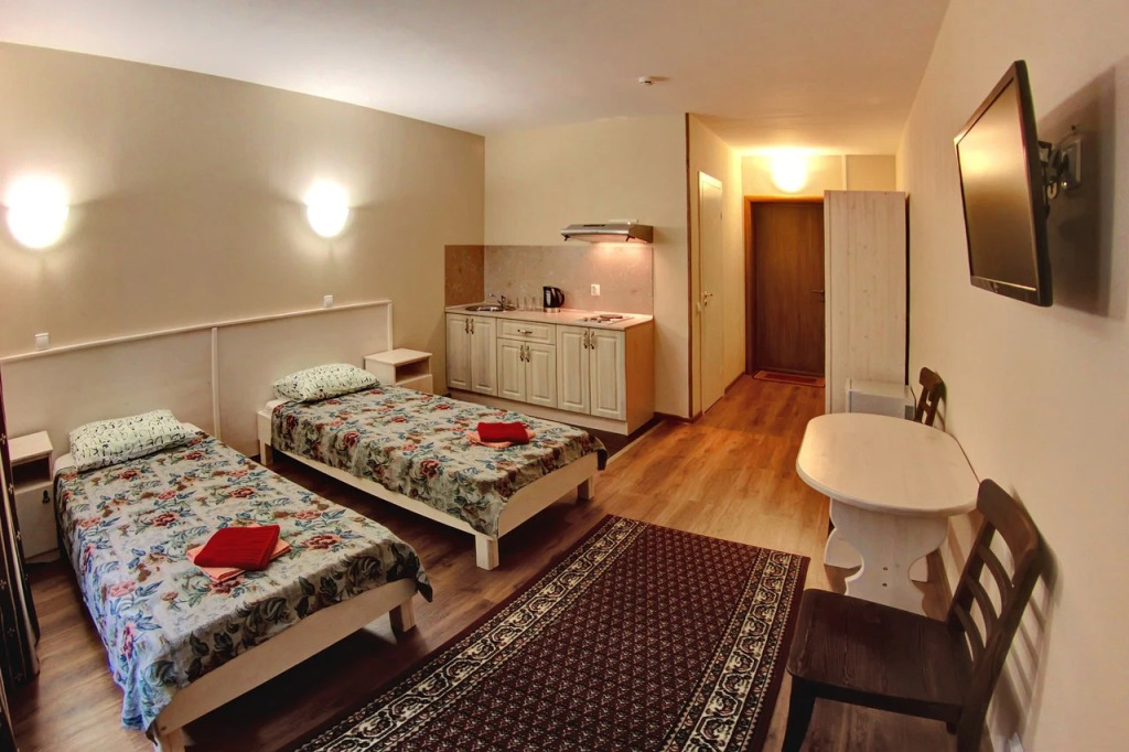 В каждом номере предоставляется телевизор и холодильник, а некоторые номера оборудованы кухонным уголком и собственной ванной комнатой.