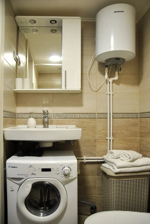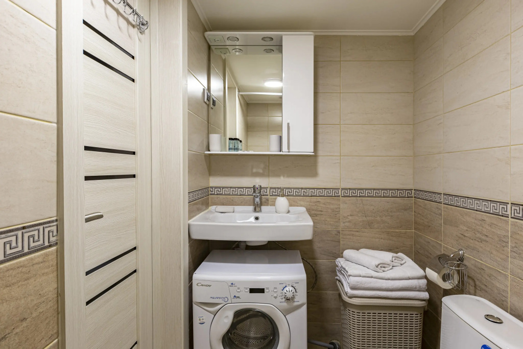 В номере есть все необходимое для комфортного прибывания. Аппартаменты оснащены холодильником, стиральной машиной, варочной панелью, есть духовой шкаф, утюг, сушилка и обогреватель. Есть необходимый набор посуды и принадлежностей, электрочайник, сахар и чай. В ванной комнате душевая кабина, гигиенические принадлежности, фен и стиралка, большое количество полотенец.