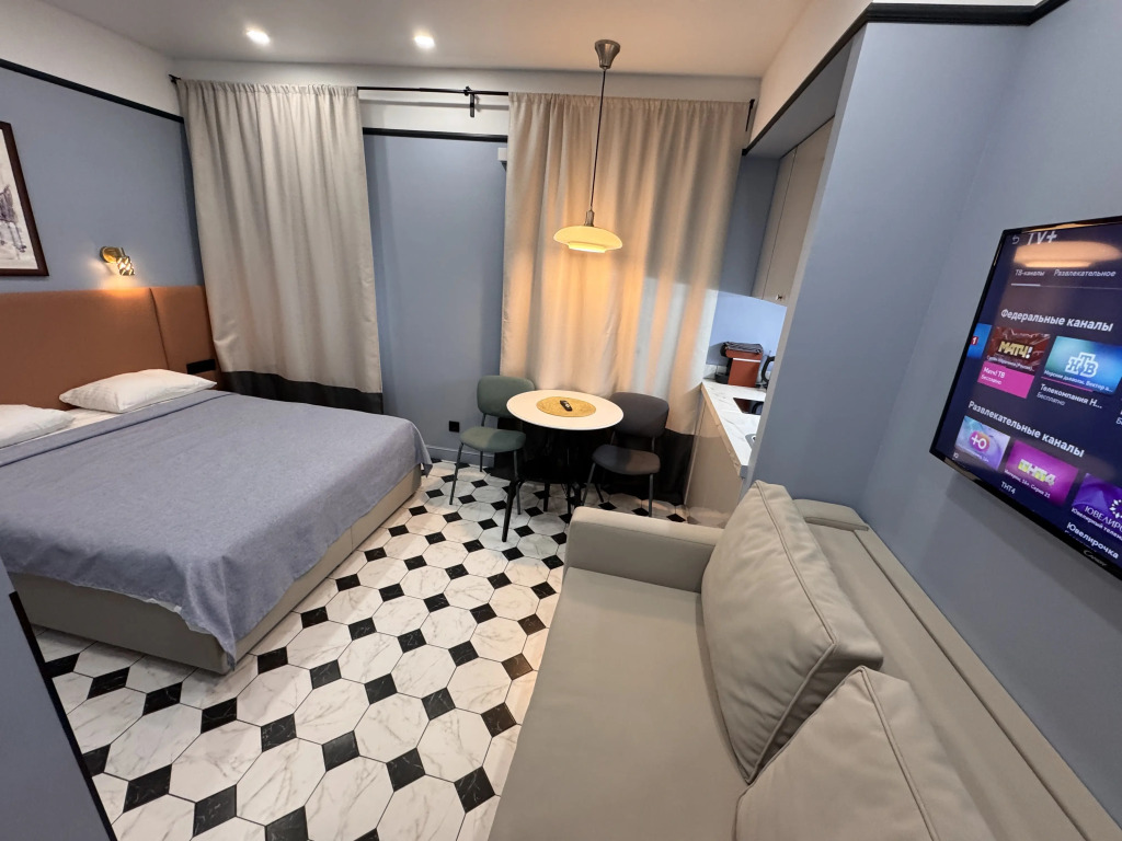 В номере вы найдёте телевизор. Оснащение зависит от выбранной категории номера.