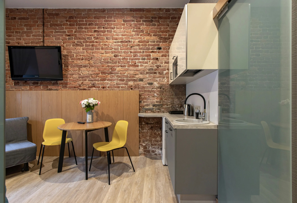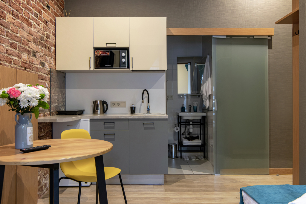 В апартаментах есть высокоскоростной интернет, телевизор, косметические и чайные принадлежности.