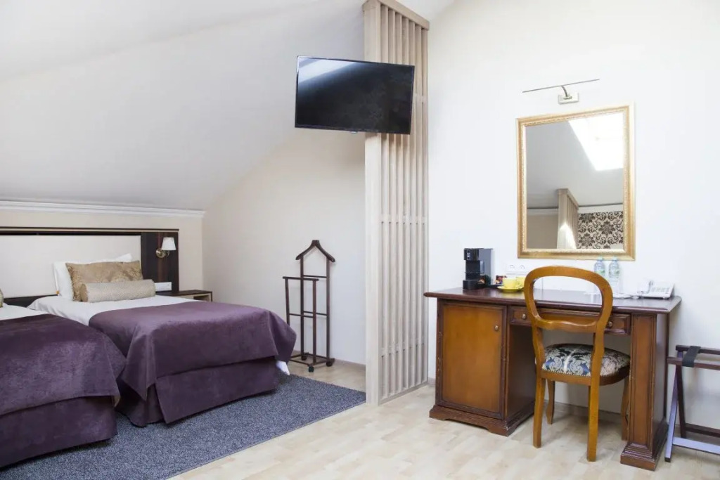 В каждом номере: капсульная кофемашина, бутилированная вода, чайный набор, душ, телевизор, фен, халат и тапочки, фирменная косметические принадлежности. Все номера оборудованы кондиционером и мини-баром