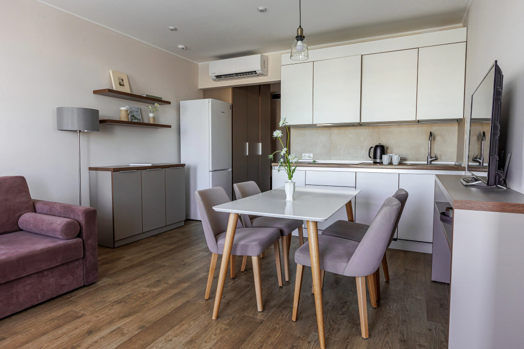 Гостям доступны и другие услуги. Например, гладильные услуги. Сотрудники апарт-отеля поддержат беседу на английском и русском.