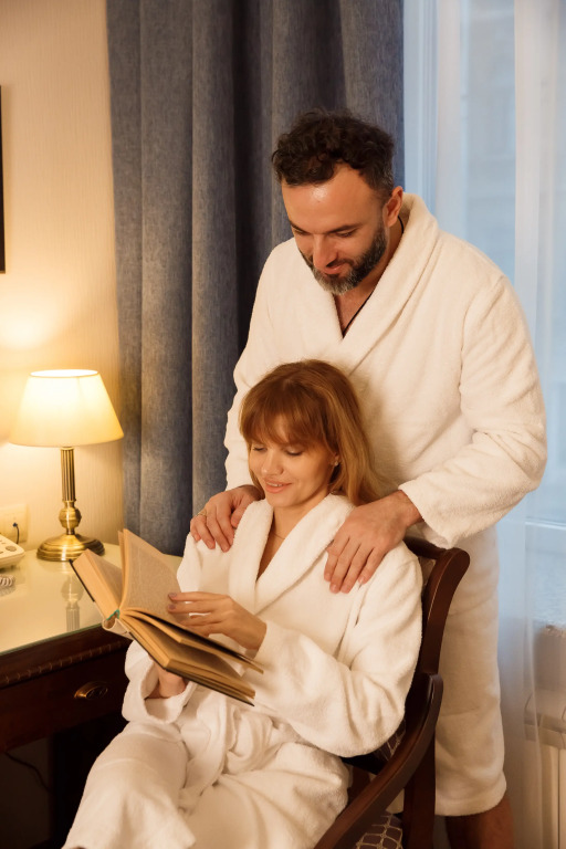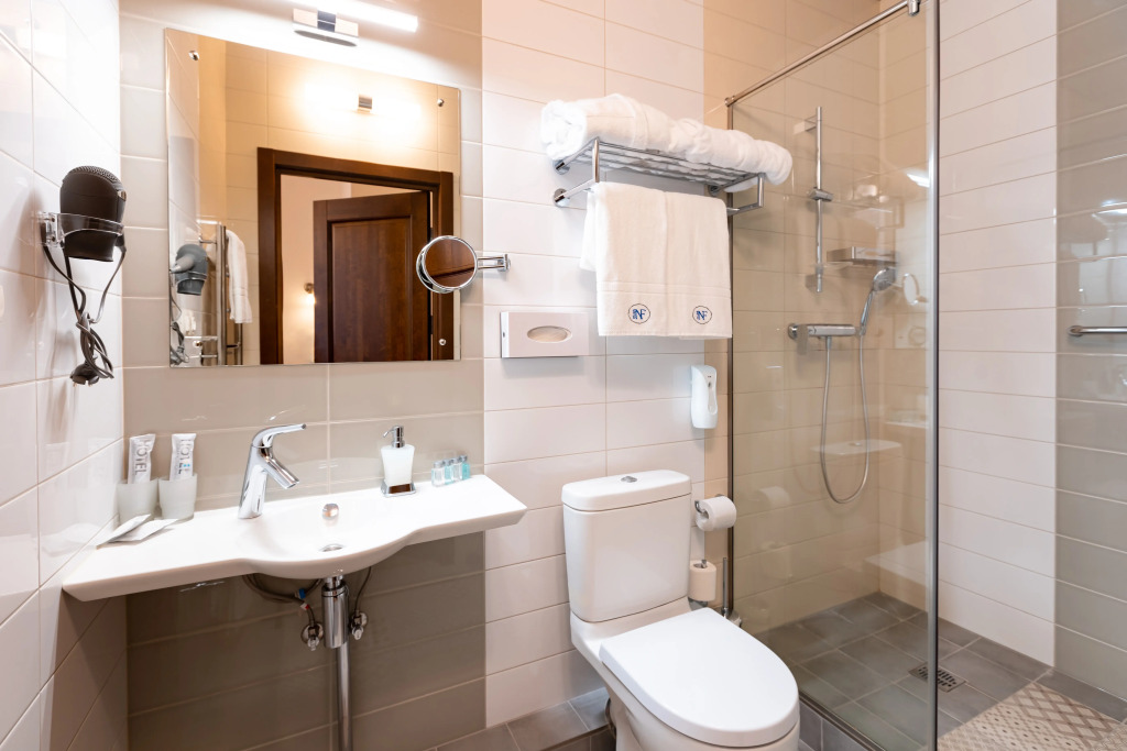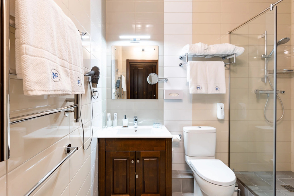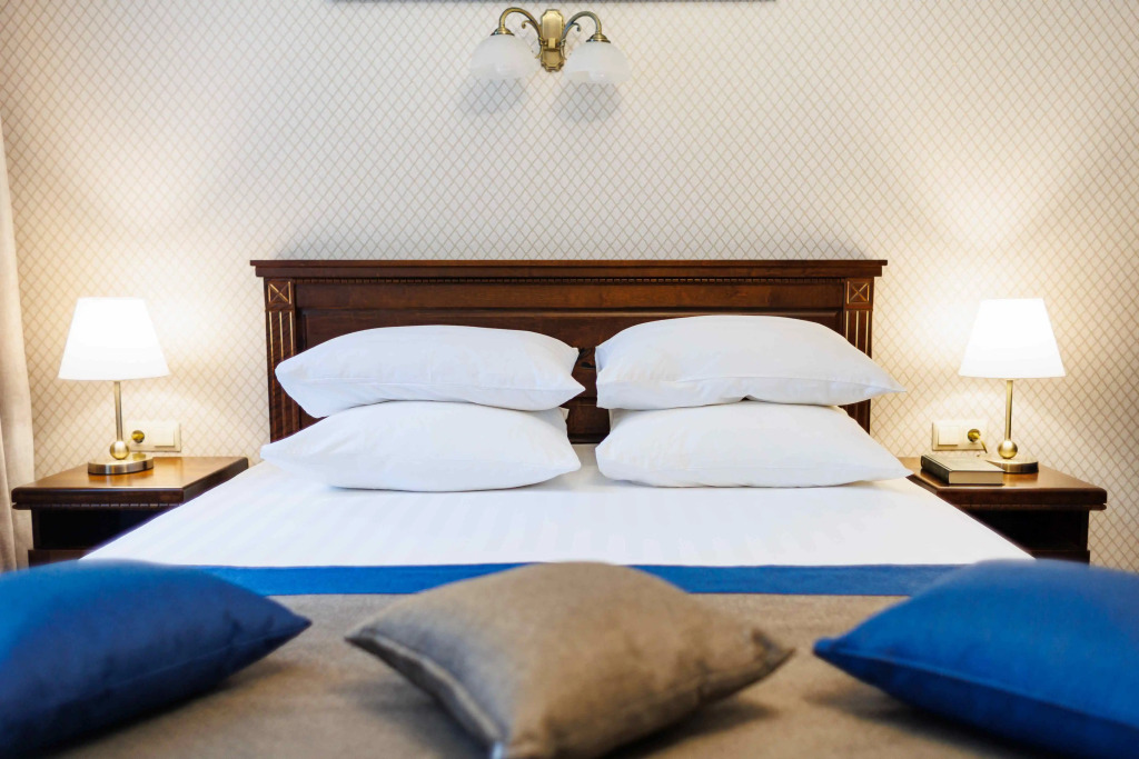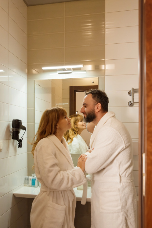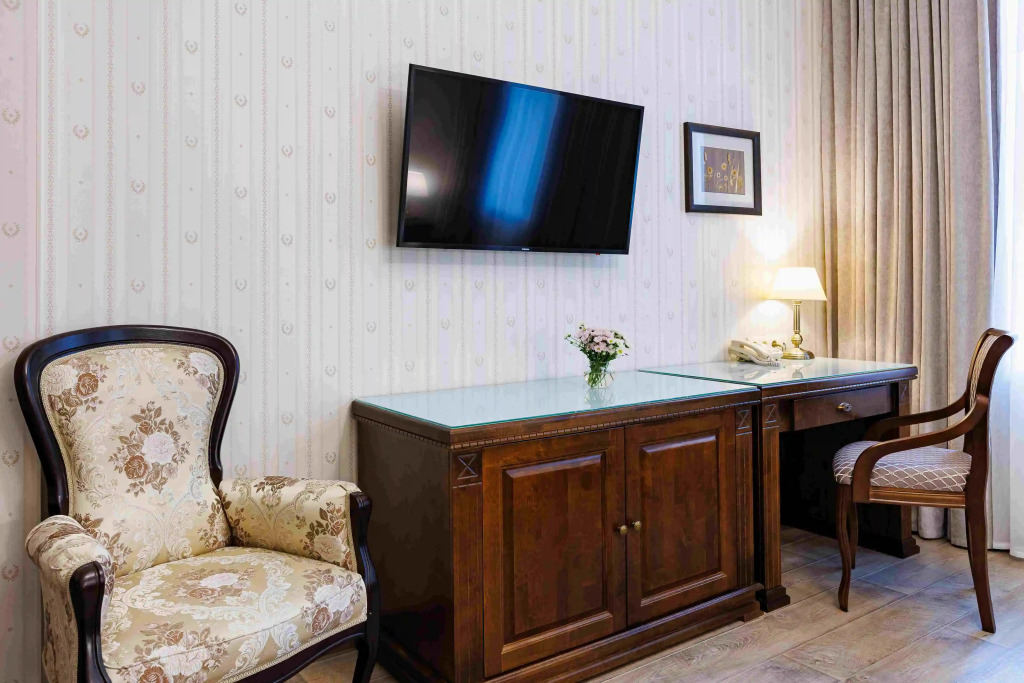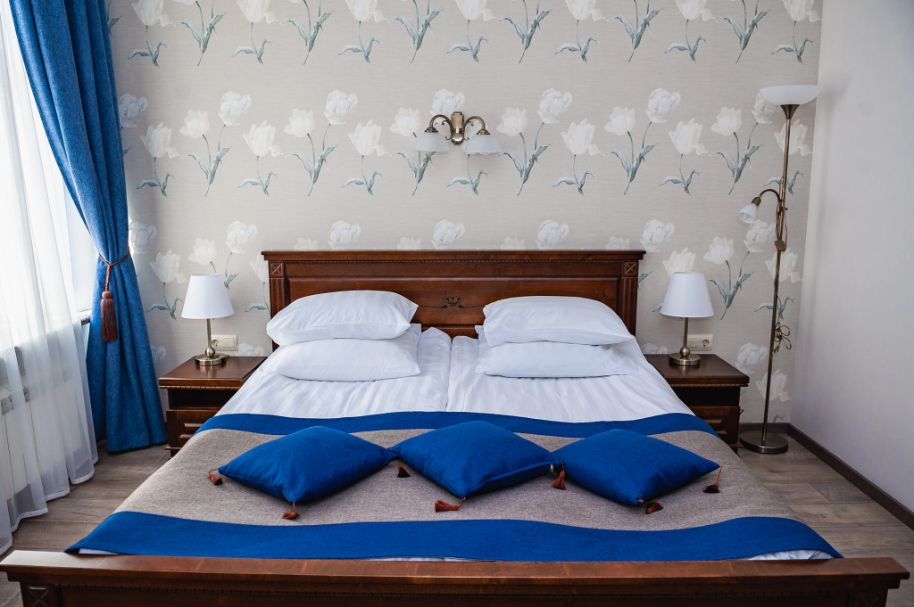 Удобная кровать, белоснежное чистое белье, температура в комнате регулируется, тёплые полы, добротная, новая мебель. В ванной комнате все имеется - фен, белоснежные полотенца, халат, тапочки, мыльные принадлежности, туалетная бумага, зубная щетка и паста.