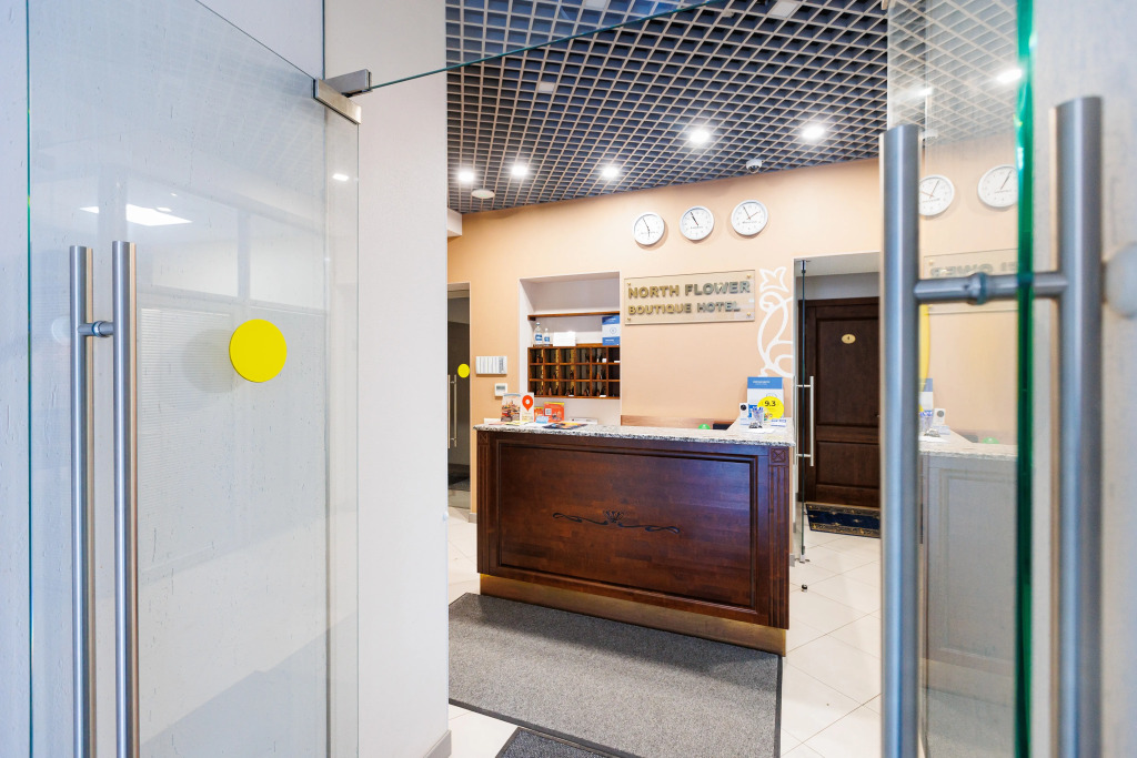 Ходить до ресепшен приходится через улицу в соседнюю дверь здания.