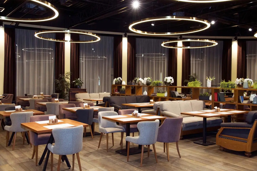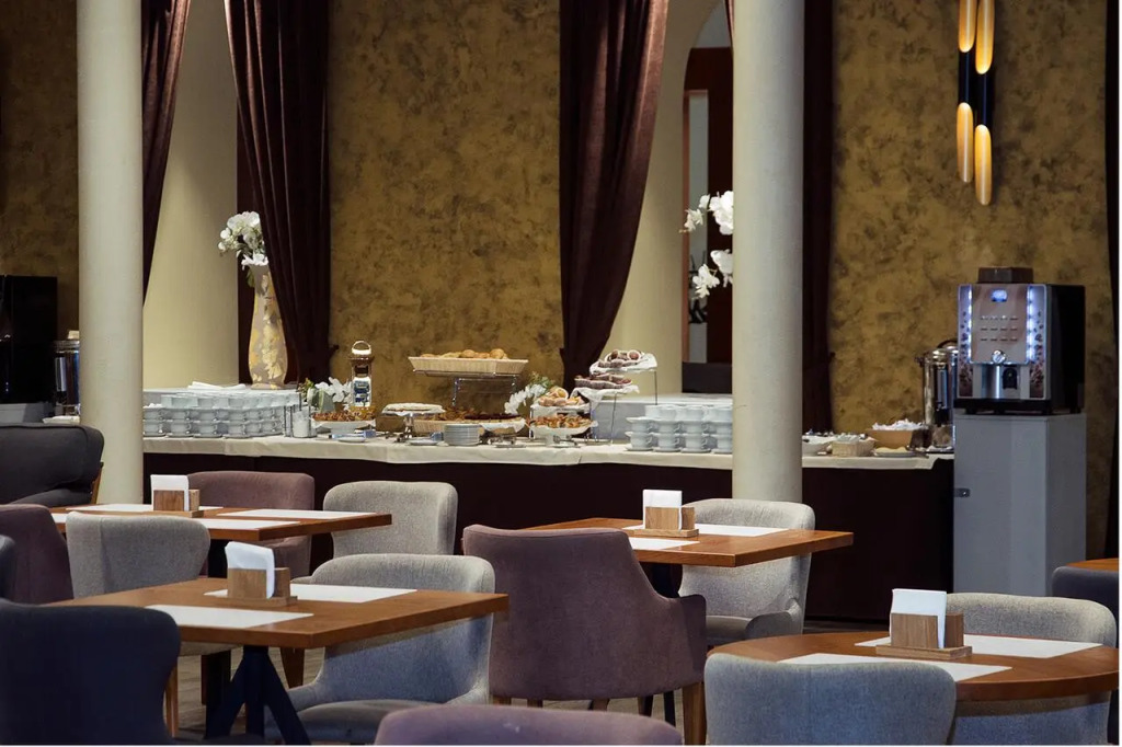 По утрам в отеле накрывают завтрак «шведский стол». Завтрак предлагается за отдельную плату. В отеле есть ресторан «Ассамблея» и круглосуточный лобби-бар.