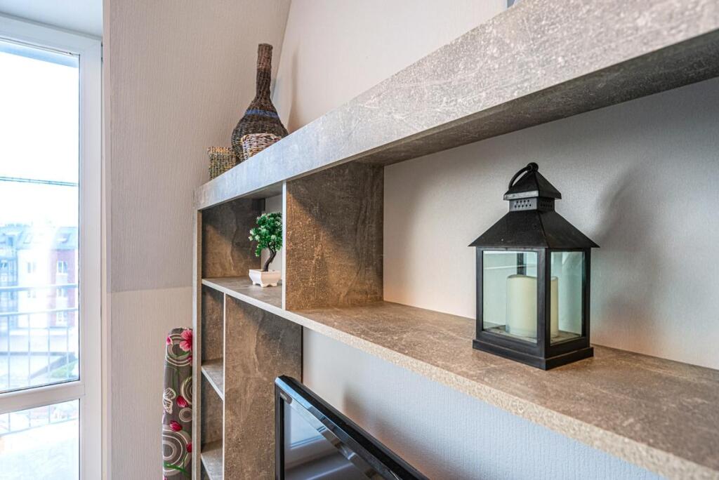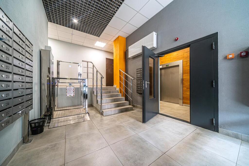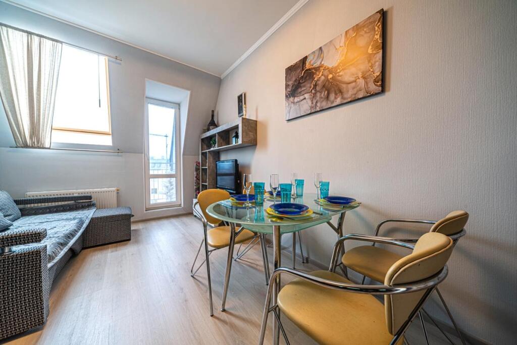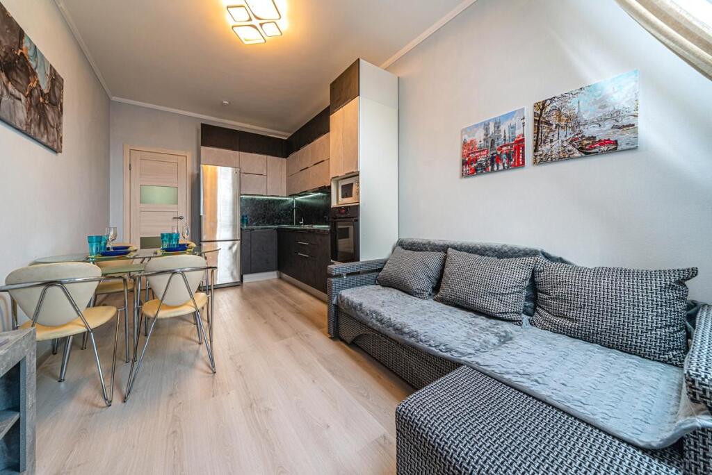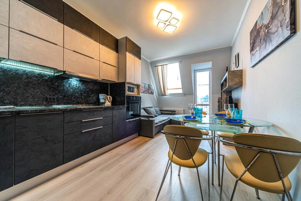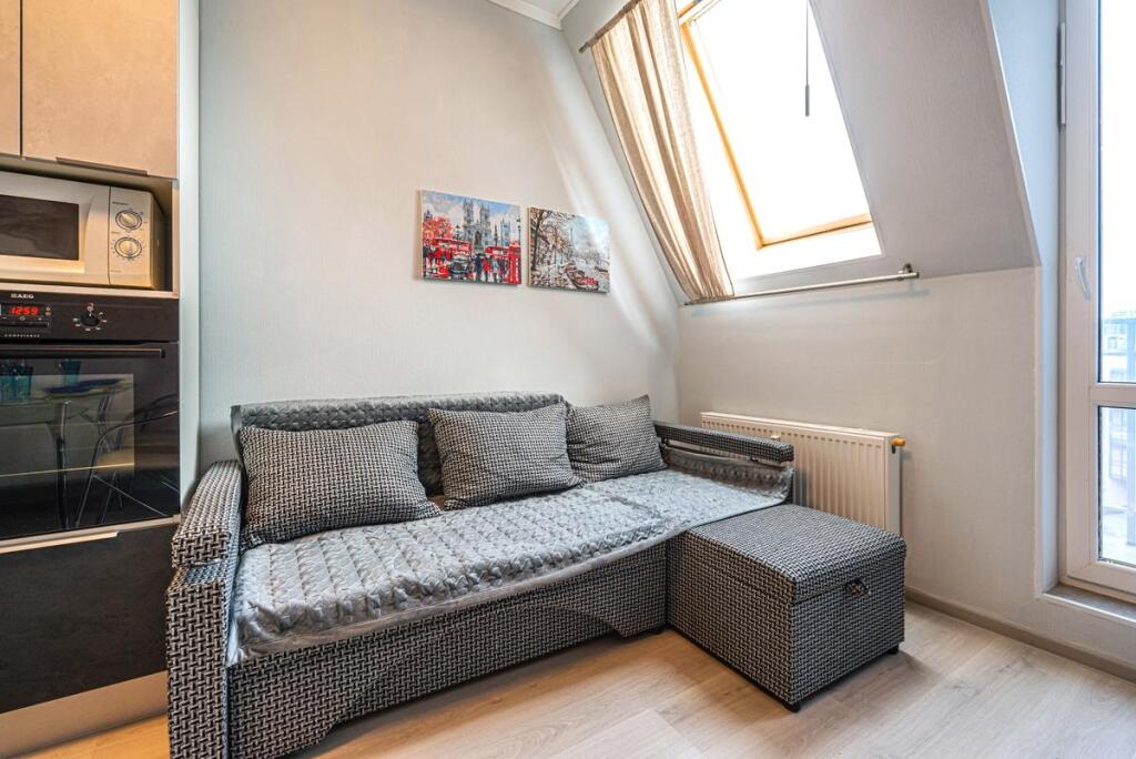 Квартира расположена на 5 мансардном этаже и подходит для проживания до 4 гостей.