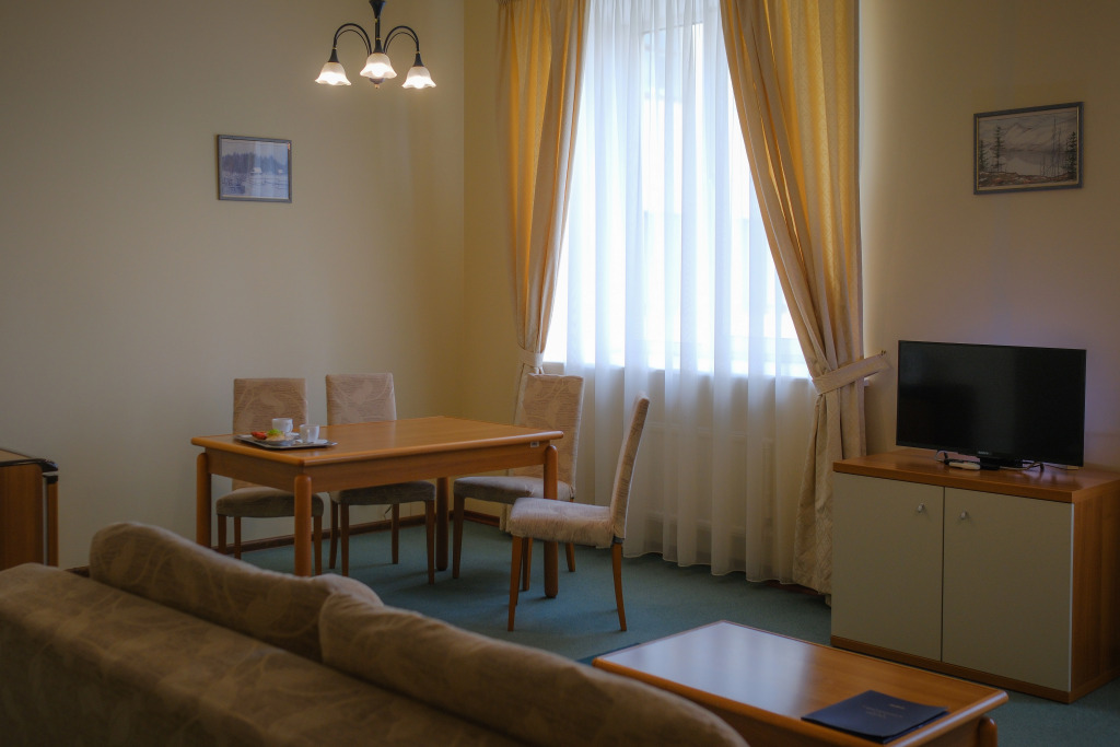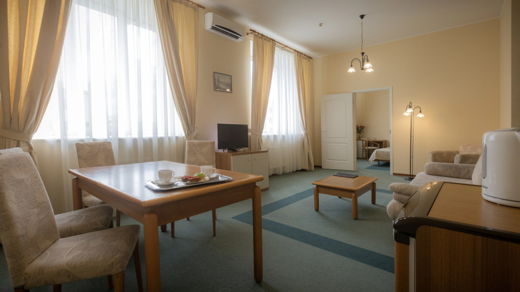 В номере гостей ждут телевизор. Оснащение зависит от выбранной категории номера.