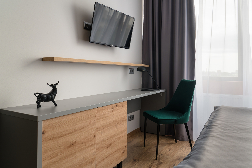 В номере гостей ждут телевизор. Оснащение зависит от выбранной категории номера.