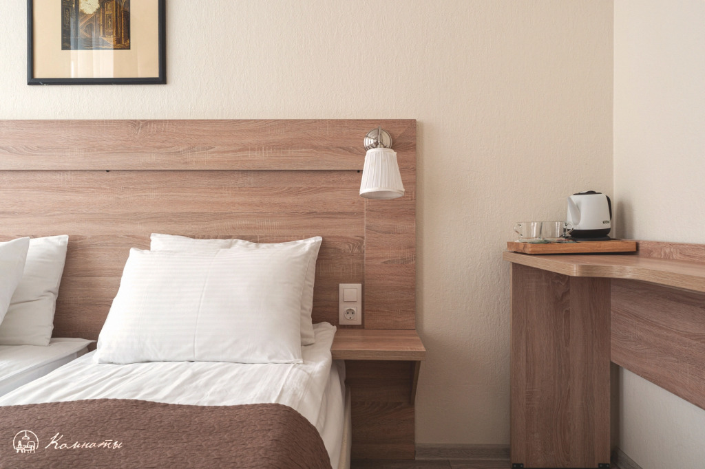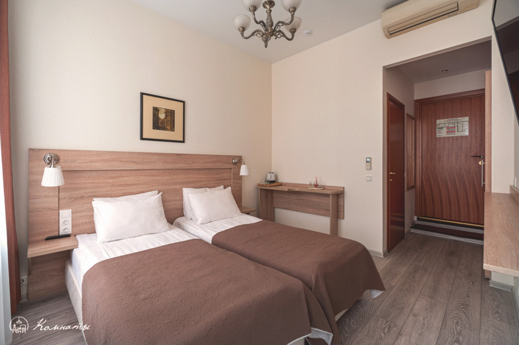 Комнаты оснащены классической мебелью и современными удобствами, есть отдельная ванная комната с феном. В комнатах установлен современный телевизор с широким выбором каналов. Имеется мини-холодильник, доступен высокоскоростной Wi-Fi. В некоторых комнатах используются кровати-трансформеры, которые при необходимости соединяются и застилаются общим топпером.