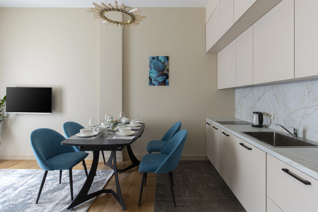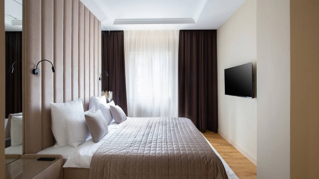 В распоряжении гостей 19 апартаментов, площадью от 38 до 120 кв. м. Номера с одной, двумя и тремя спальнями.