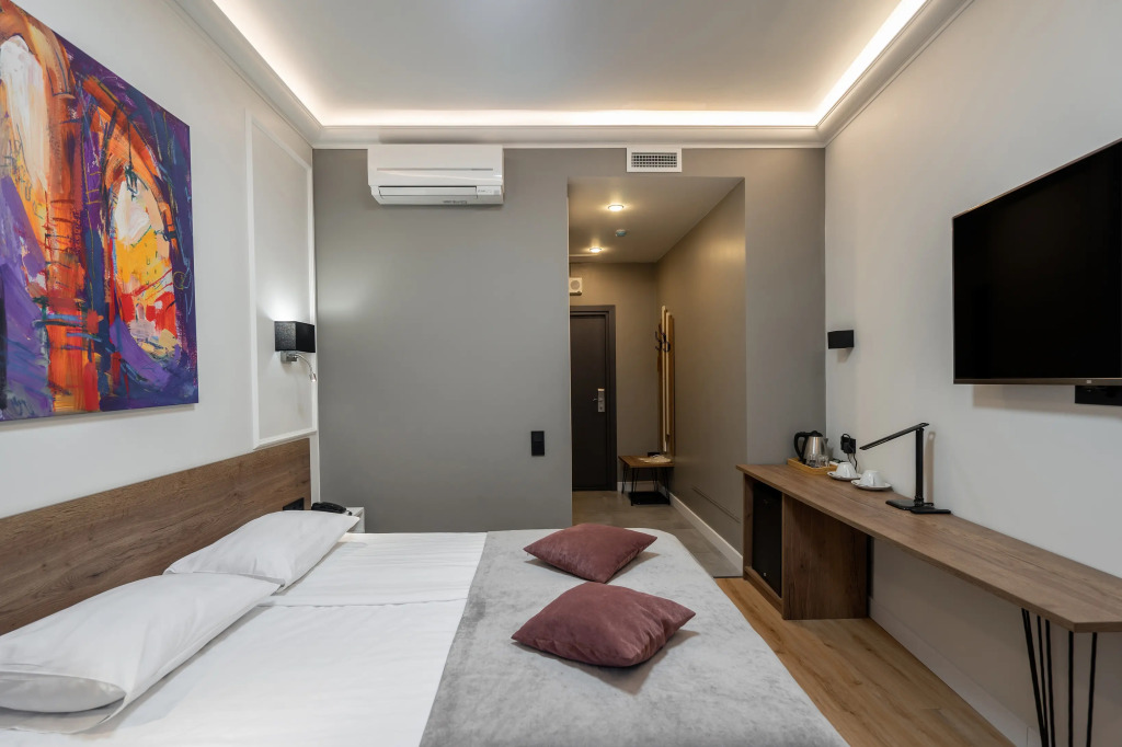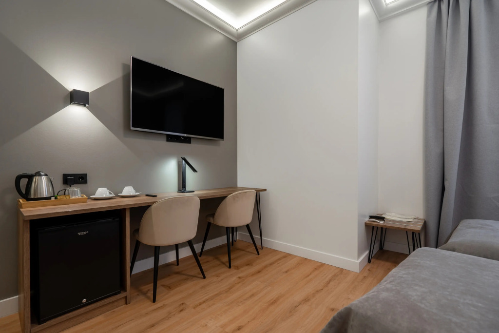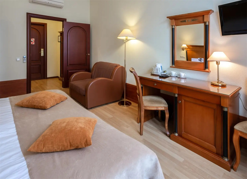 Номерной фонд отеля составляет 48 номеров, часть из которых открыта в январе 2022 года (Лофт). Номера оформлены в классическом стиле (Стандарт и Комфорт) и в современном стиле (Лофт), оснащены кондиционером, телевизором с плоским экраном, мини холодильником, удобствами для приготовления чая. В ванной комнате номера категории «Комфорт» гости найдут банные халаты и бесплатные туалетные принадлежности. Во всех номерах есть своя ванная комната, фен, тапочки, набор полотенец, бесплатный Wi-Fi.