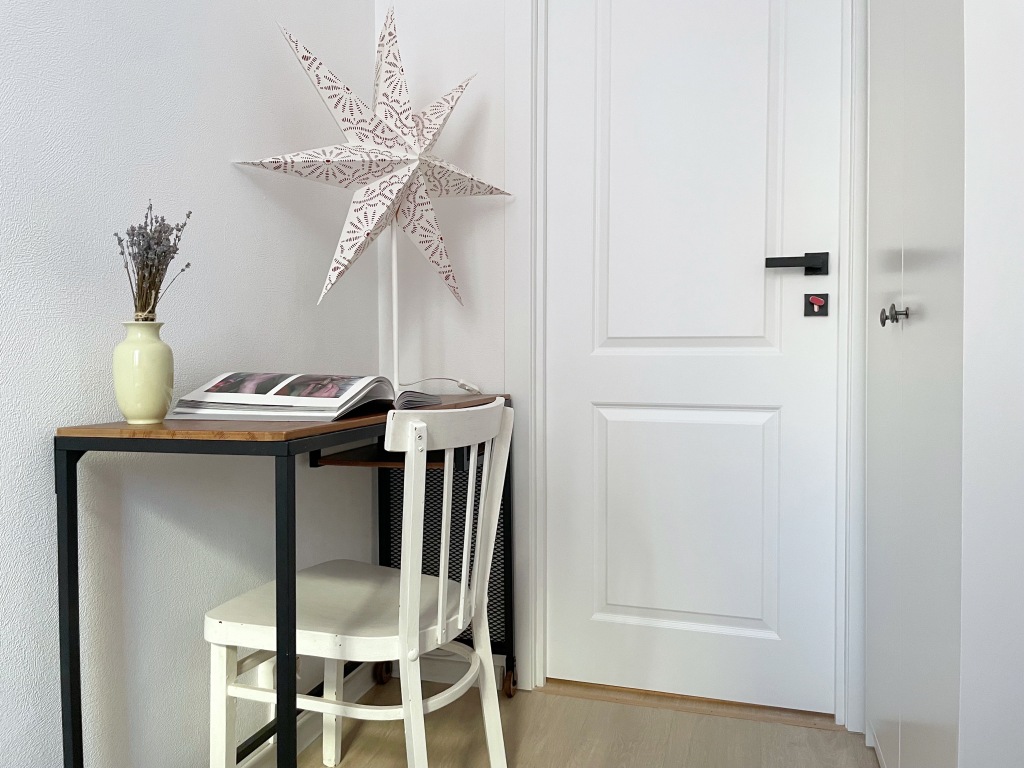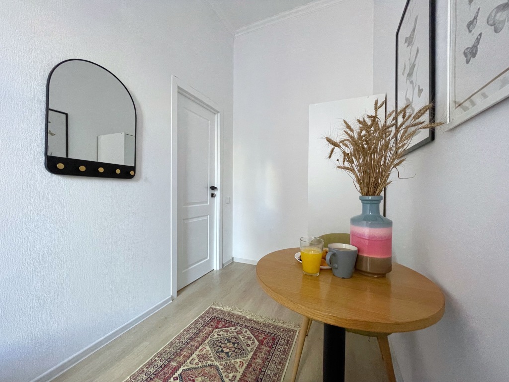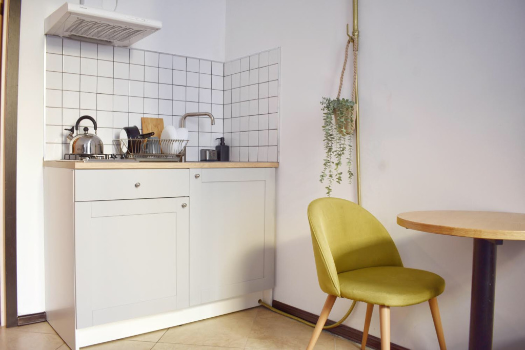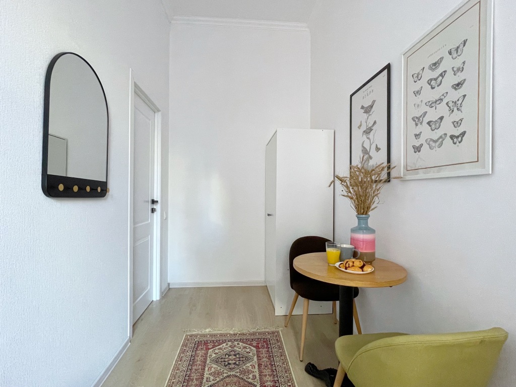 В апартаментах есть все необходимое : кухня (полностью обустроенная, кофе, чай, салфетки); гладильные принадлежности, фены, средства для ухода за обувью и одеждой, что очень приятно.