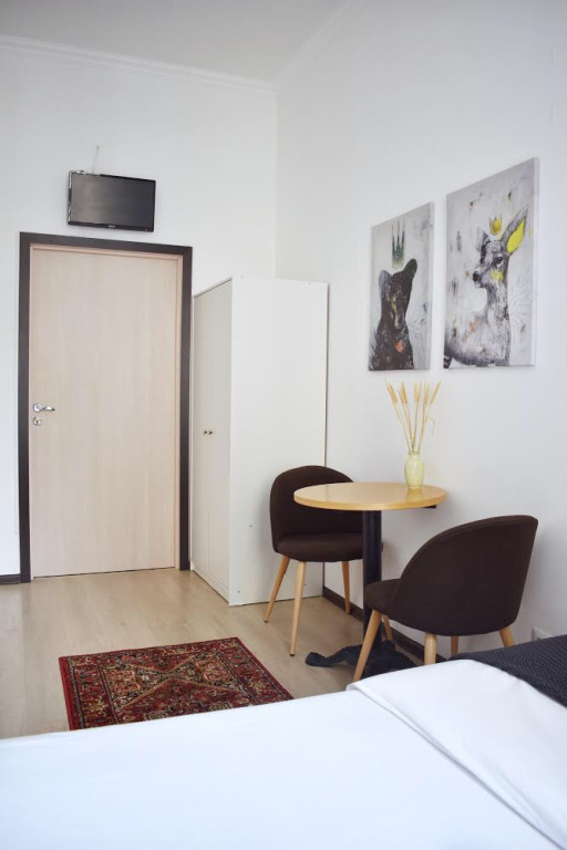 Очень хороший чистый хостел, убирают каждый день. На шесть комнат два душа, и два сан-узла. Кухня с плитой, холодильником, чайником, посудой, продуктами первой необходимости ( чай, кофе, соль, некоторые крупы). В хостеле есть стиральная машинка ( стирка стоит 200 р.) ранее в отзывах писали про Комаров: в нашем номере было два фумигатора, пластинки лежали на холодильнике на общей кухне.