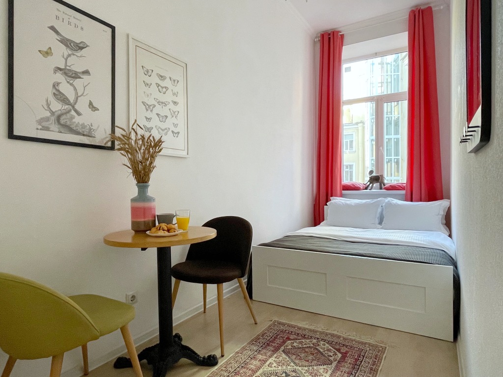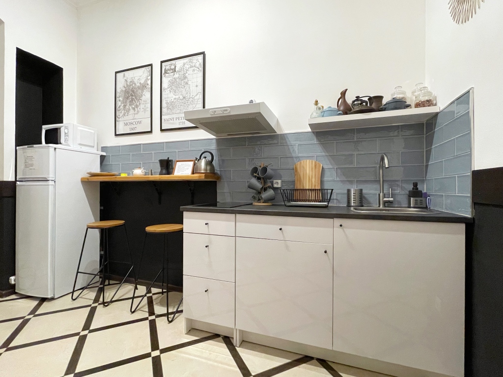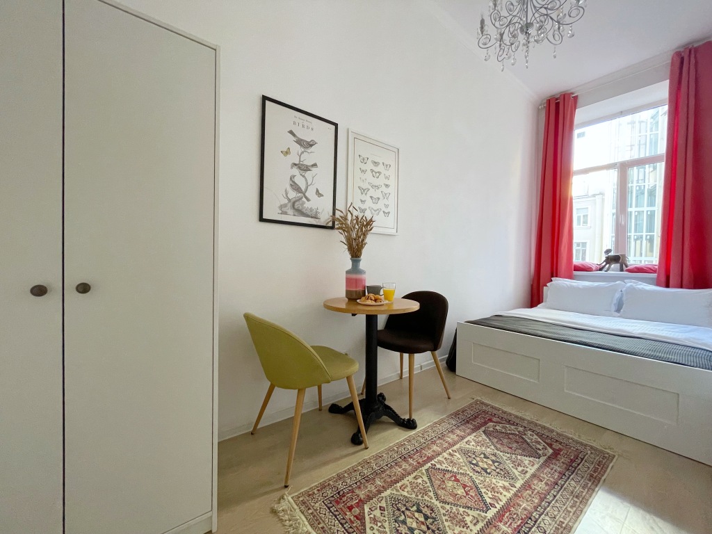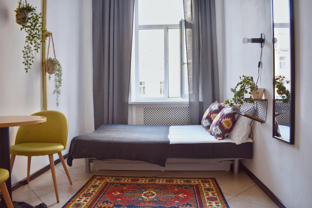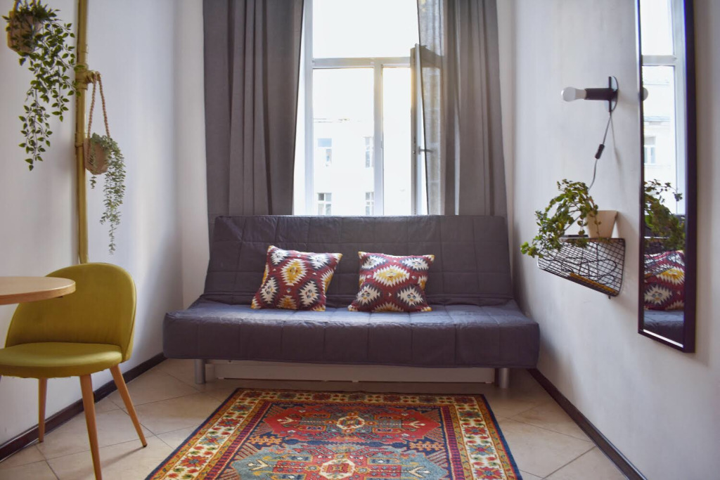 Удачное расположение, набережная реки Фонтанки прямо при выходе со двора, много магазинов и заведений в шаговой доступности. Метро в 10-12 минутах ходьбы. Расположение имеет и минус, который ощутим в летний сезон - очень много комаров из-за близости канала, на окнах нет сеток, за первую ночь в апартаментах было получено 23 укуса, это крайне неприятно, поэтому следует быть готовым, что открывать окна в летнее время, вне зависимости от времени суток, очень опасно. Последние 2 суток проветривать помещение не решалась.
