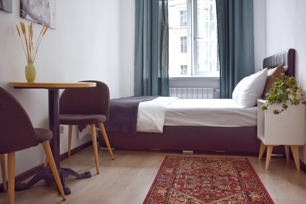 рядом много вкусных ресторанов, рядом метро да и пешком удобно добираться до смотровой например, до катания на лодочке. В номере есть гель для душа, всегда есть туалетная бумага и мыло для рук, шампуня нет - надо покупать. найти было сложно, пришли ко времени что указан на сайте. Нас не заселили, сказали что заселение с 15 а не 14, после того как заселились мы с дороги уставшие легли спать. Проснувшись решили пойти покушать и погулять, выходим слышим кто-то стучит спросили кто там, это были соседи из других комнат. На нас напала разъереная женщина с криками что мы мол безчувственные твари и ей не открывают дверь, у них как оказалось сломался замок, а мы виноваты что не открыли, мы не обязаны следить за тем что происходит за нашем номером, мы не слышали пока не вышли, в общем кошмар. Имейте в виду что у них такое часто. Еще в номере душно но открывать окно ночью это самоубийство, потому что налетает орда комаров, от них как раз все стены в разводах от трупов насекомых, по ночам соседи так же убивают комаров сильным стуком по стене, имейте в виду слышамость как за картонной стенкой. А еще каждое утро к вам будут стучаться а иногда и входить с помощью своего ключа чтобы убраться. вода в душе постоянно прыгает то пипец горячо то холодно, напор воды слабый, сложно мыть голову с длинными волосами. По ночам иногда слышно как орут коты на улице и дерутся. У меня всё)