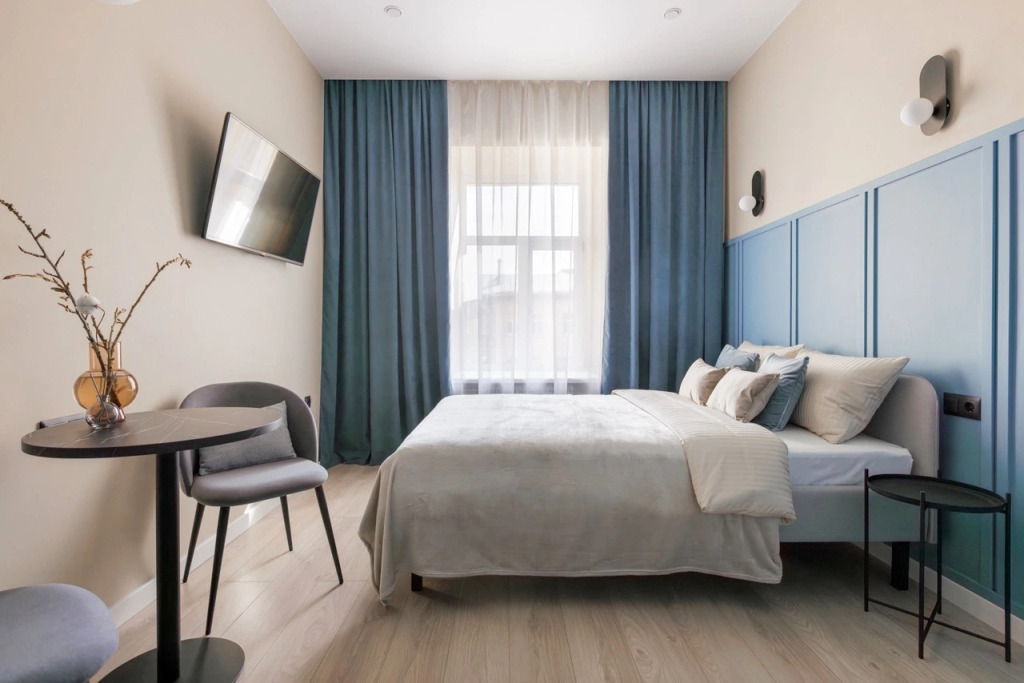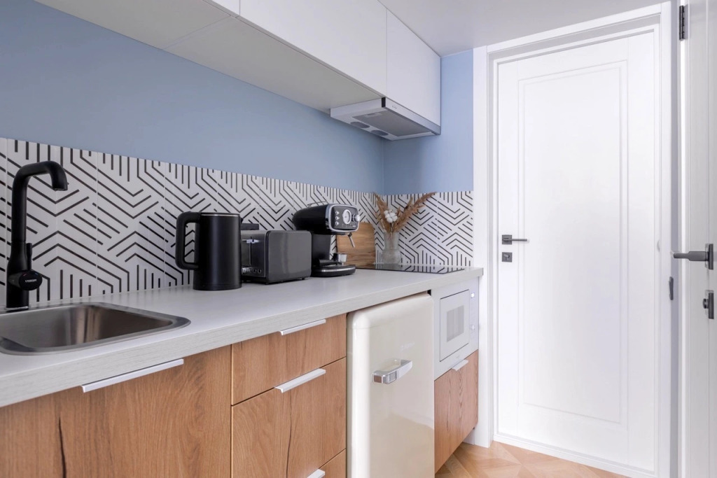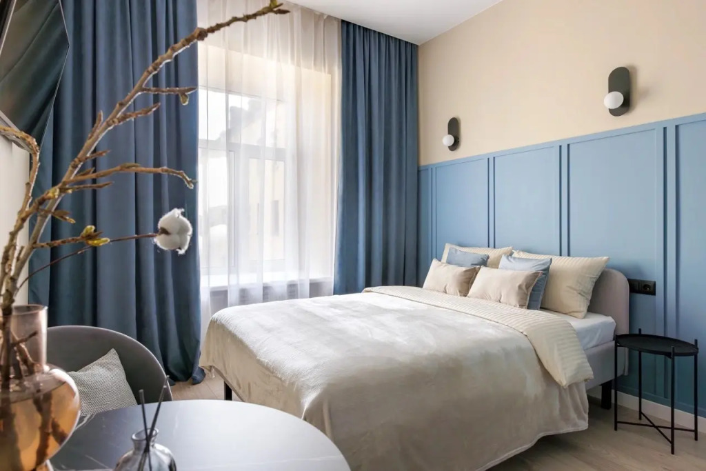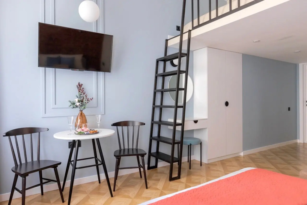 Гостям предоставляется постельное бельё, ванная комната с душевыми принадлежностями, полотенцами, тапочками и феном. В кухонной зоне установлены холодильник, микроволновая печь, индукционная плита, тостер, чайник, посуда, предусмотрены кофе и чай. В номере есть телевизор с цифровыми каналами и бесплатный Wi‑Fi. В комнатах установлены кровати.