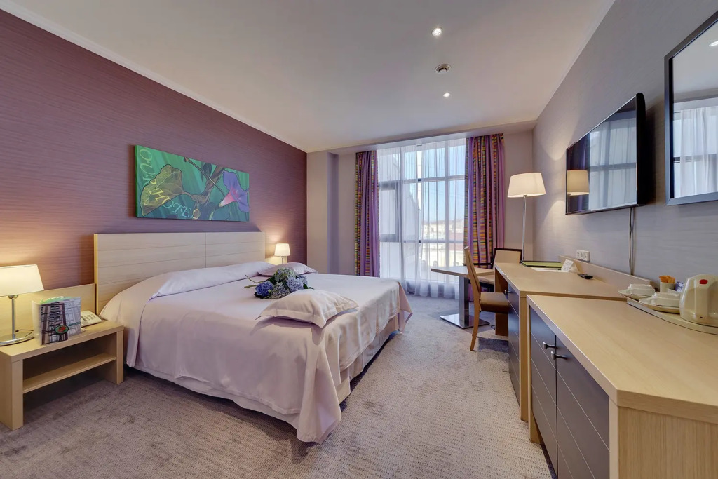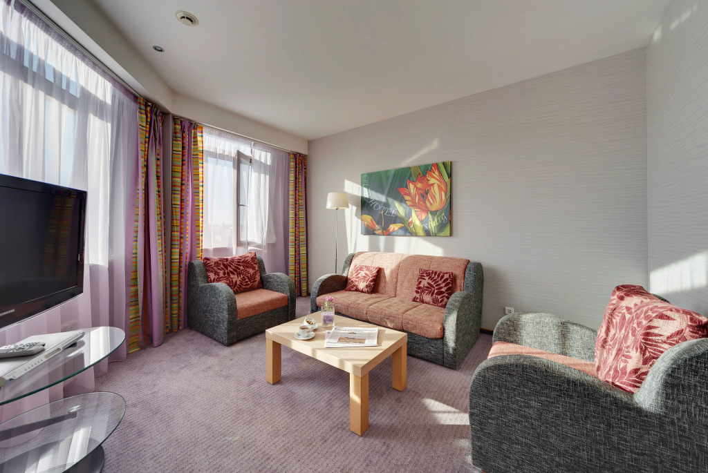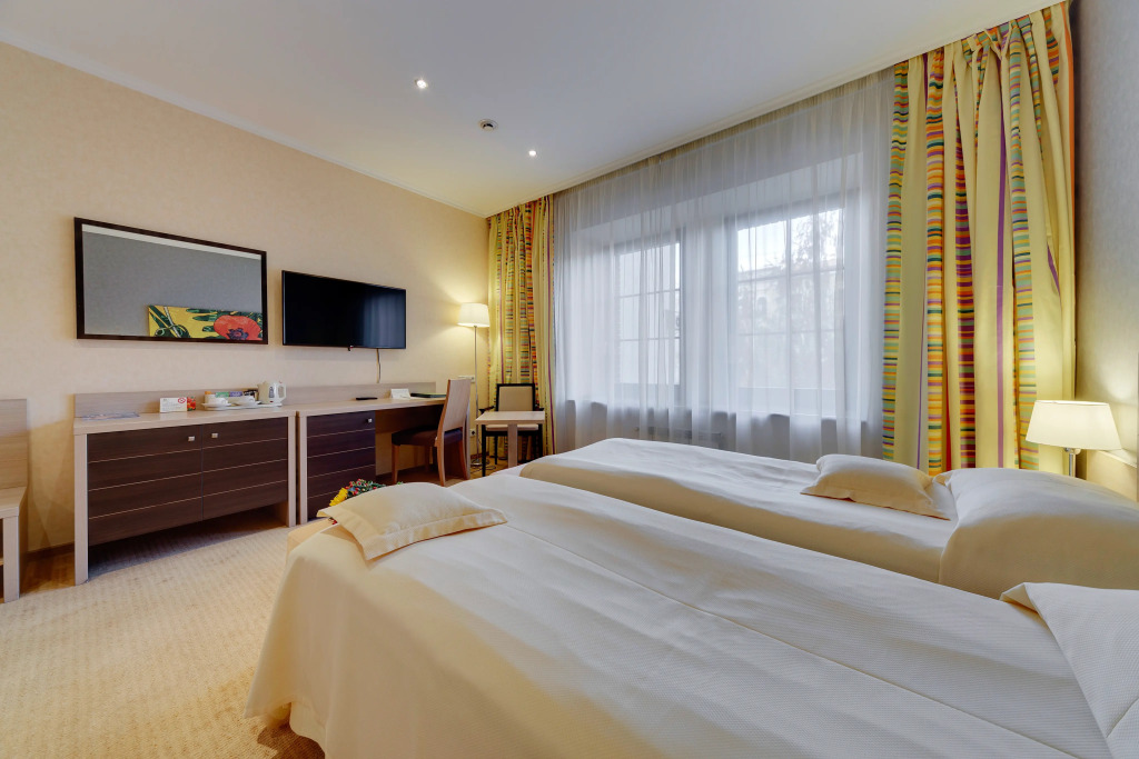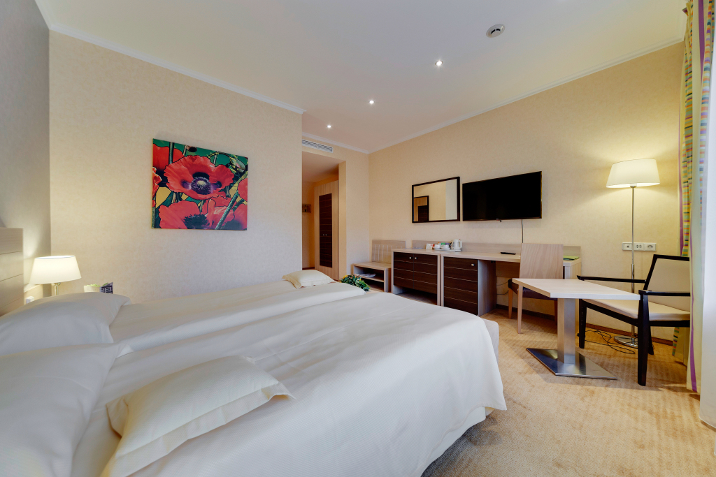 Чтобы вы могли отдохнуть после долгого дня, в номере есть телевизор и мини-бар. Оснащение зависит от выбранной категории номера.