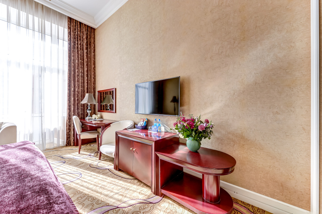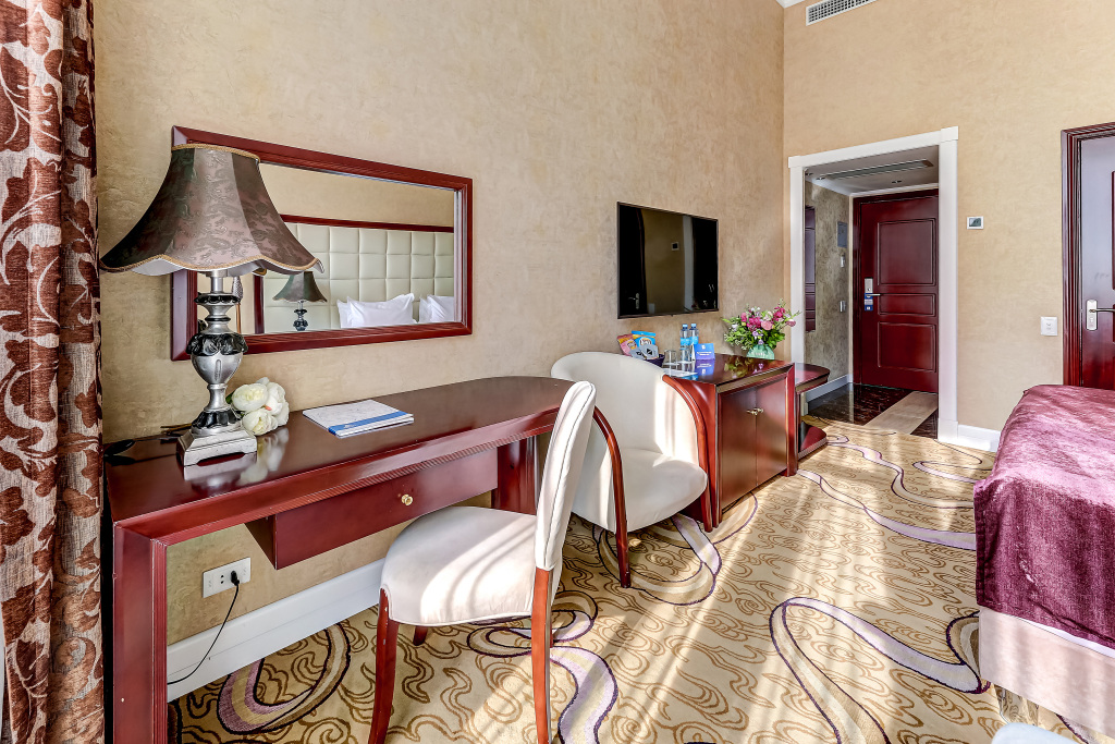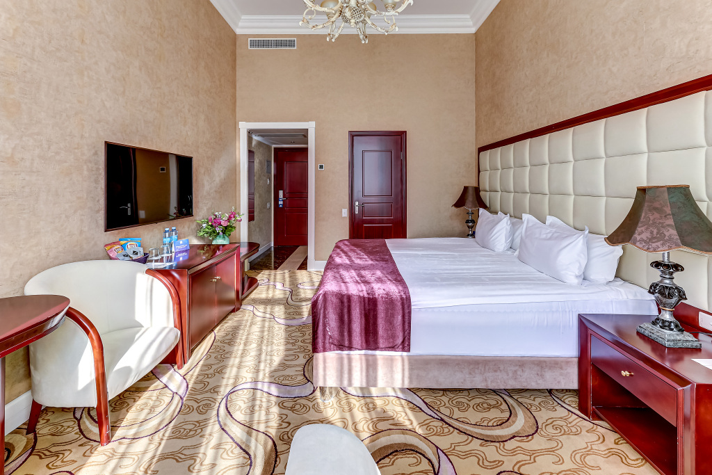 К услугам гостей 111 номеров различных категорий. Все номера оснащены LCD-телевизорами с интерактивным телевидением, сейфами, мини-барами, индивидуальной системой кондиционирования, телефонами, ванными принадлежностями, халатами и тапочками. Номера оформлены в классическом стиле и светлых тонах, в некоторых номерах восстановлены старинные камины, печи, лепнина и барельефы.