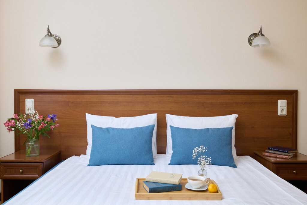Кровать удобная, белье меняют каждый день, есть фен, халаты, полотенца, шампунь/кондиционер, гель для душа, зубная щётка/паста, мыло жидкое. В номере чисто, уютно, есть все необходимое. Сейф, шкаф, чайник, чашки. Единственное не смогли разобраться с телевизором, не нашли обычные тв-каналы.