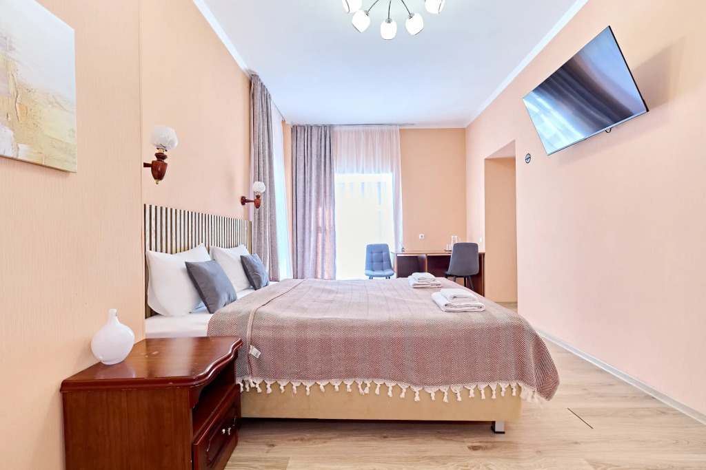 Гостиница предлагает размещение в номерах различных категорий «Эконом», «Стандарт», «Улучшенный стандарт», «Комфорт», «Мансардные» номера с кухней.
