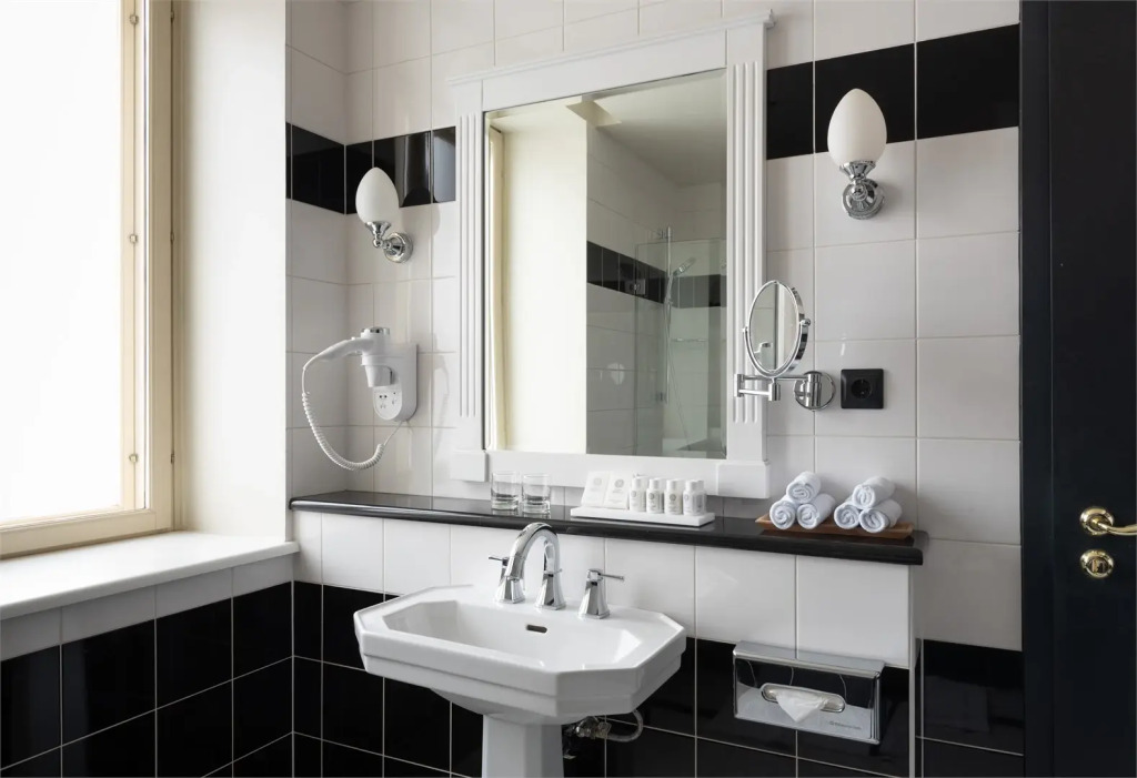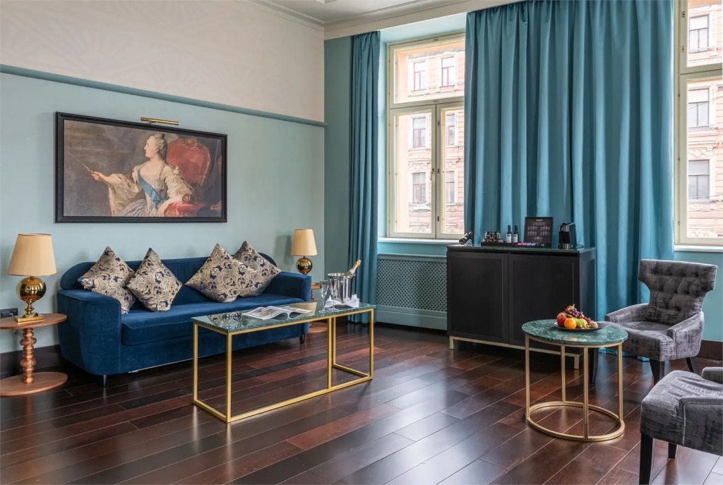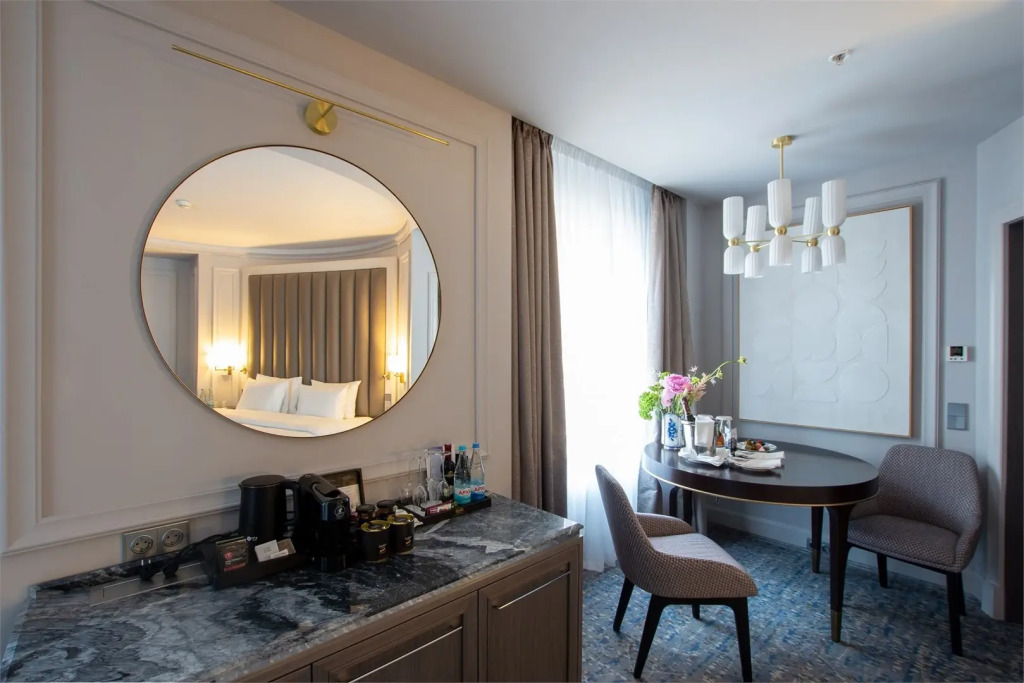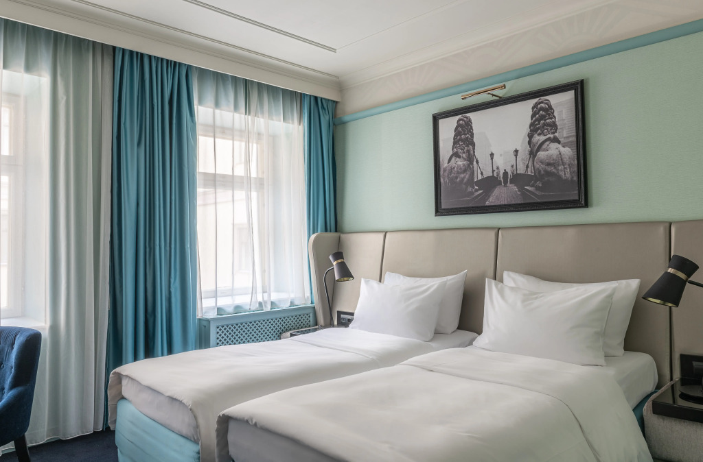 В распоряжении гостей номера в сине-голубой гамме. Все номера отеля оснащены кофемашиной Nespresso и принадлежностями для чая и кофе. В числе прочих удобств — телевизор, а также кнопка One Touch для быстрого доступа к услугам отеля, бутилированная вода, в номерах повышенной комфортности — ванная комната с полом с подогревом. Оснащение зависит от выбранной категории проживания.
