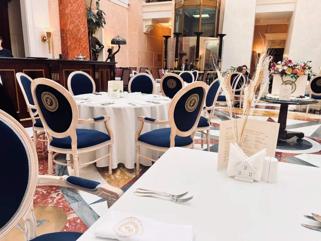 Тариф для номеров «Двухместный люкс c 1 комнатой», «Двухместный люкс с 2 комнатами», «Двухместный люкс Николай Гумилёв» и «Премиум Люкс» включает доступ в Елисеевскую гостиную с закусками и напитками с 12:00 до 18:00.