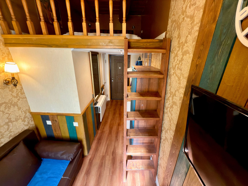 Апартаменты подходят для отдыха, командировок и длительного проживания в центре города. Гостям предоставляются четырехместные апартаменты-студия с кроватью-антресолью на втором ярусе и раскладным двуспальным диваном на первом ярусе. Каждые апартаменты оснащены: собственным санузлом с душем и феном, мини-кухней с варочной панелью, электрическим чайником, холодильником и посудой, Wi-Fi, телевизором, обеденно-рабочей зоной и местами для хранения вещей. Предоставляются постельное бельё и полотенца.