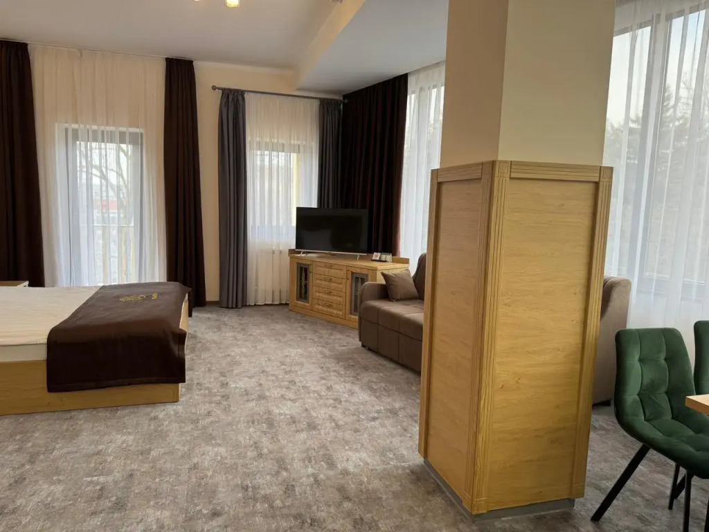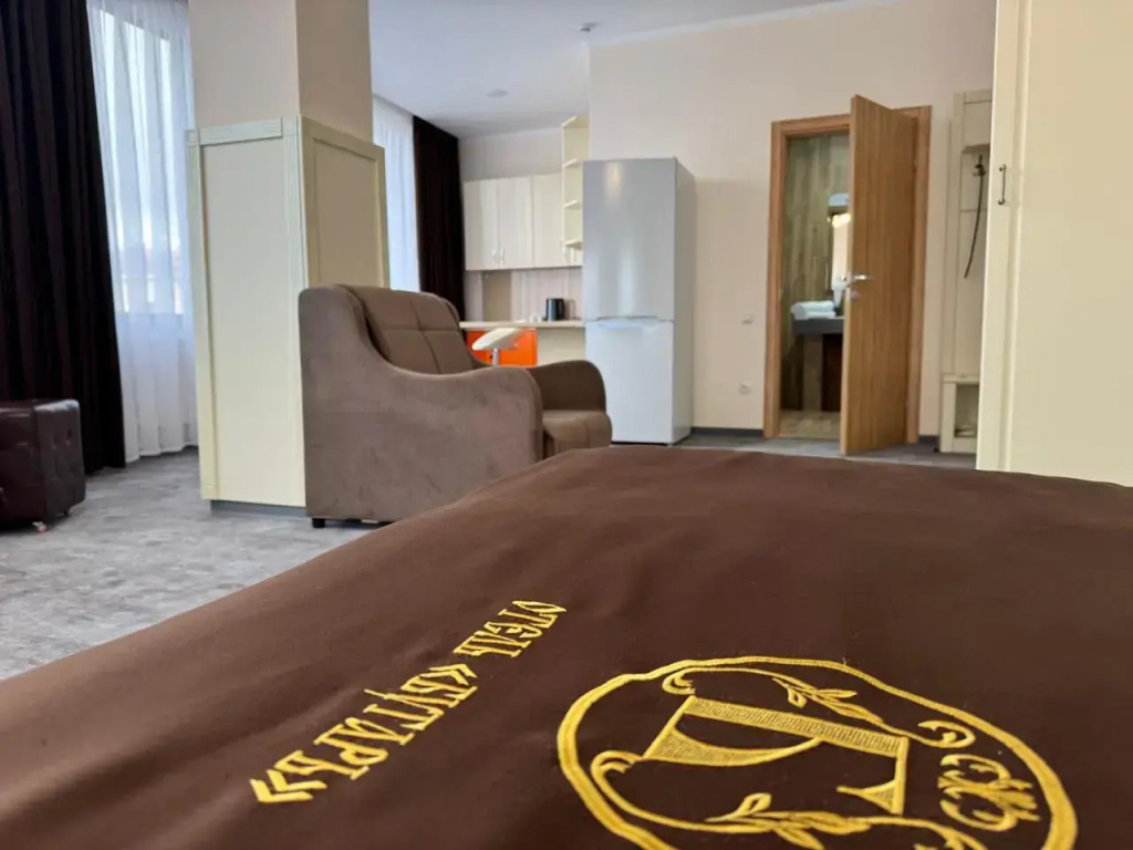Прекрасный отель, очень удобное расположение, в 5 минутах пешком от жд вокзала, в 15 минутах пешком до входа в парк. Ведется реконструкция большого корпуса, но это совершенно не мешает. Завтраки не включены, но в соседнем здании находится магазин Магнит, в трех минутах хинкальная, в 10 минутах столовая.интерьер очень приличный, номер очень большой, мебель деревянная