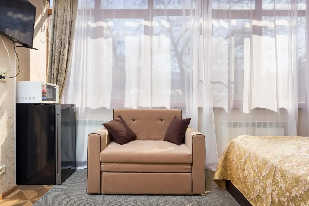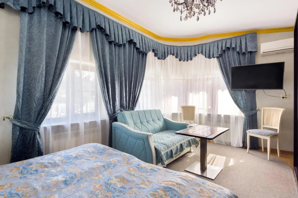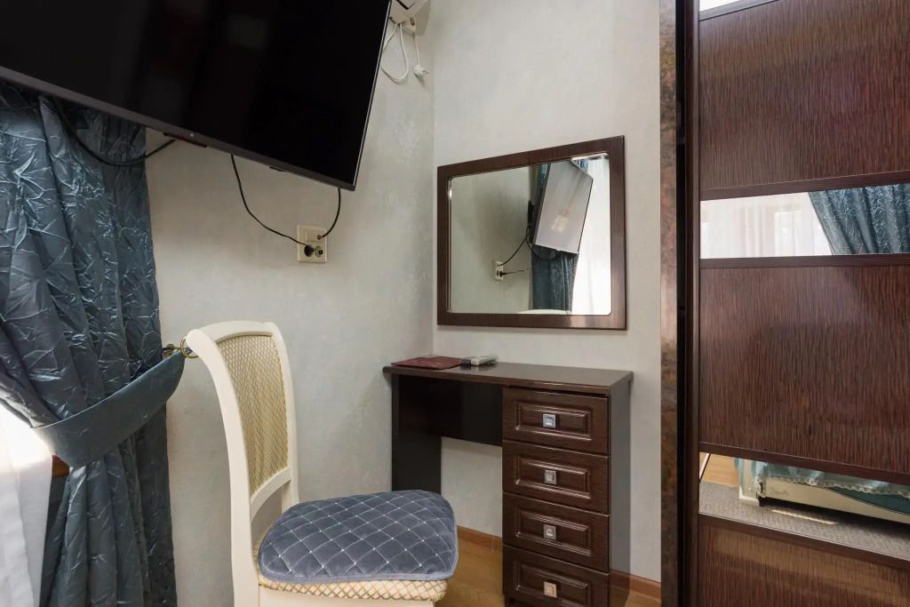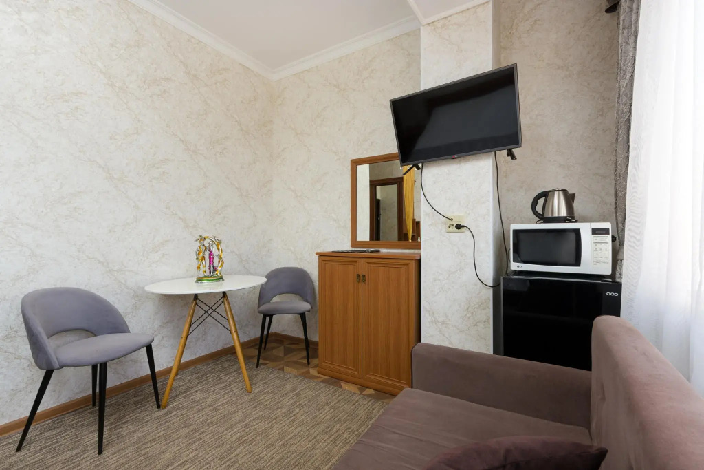 В номере вы найдёте душ, телевизор, халат и тапочки. Перечисленные услуги есть не во всех номерах.