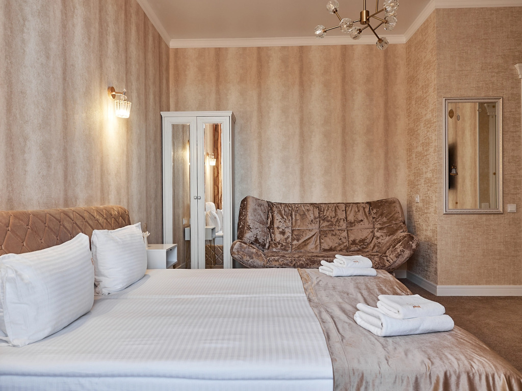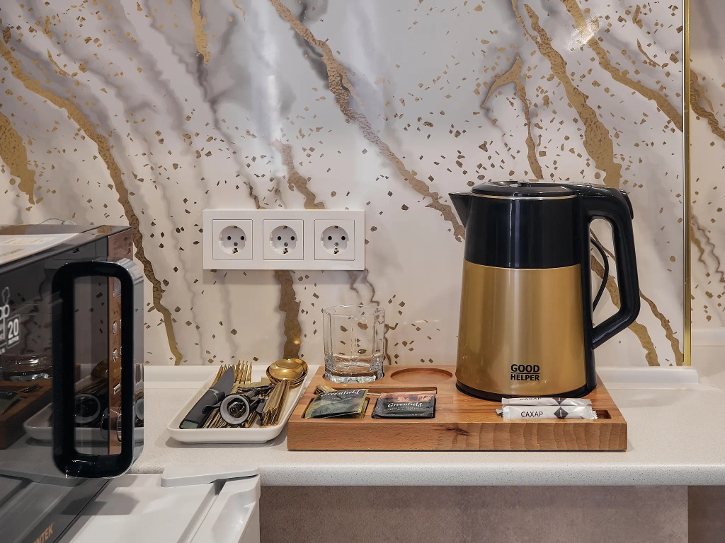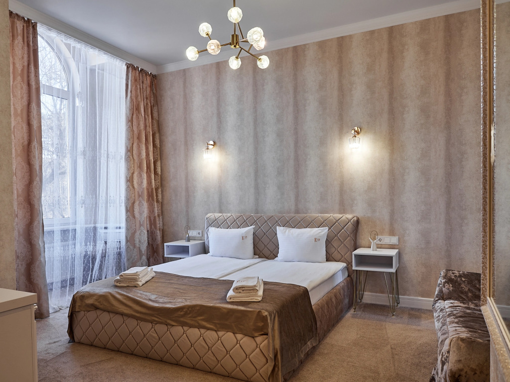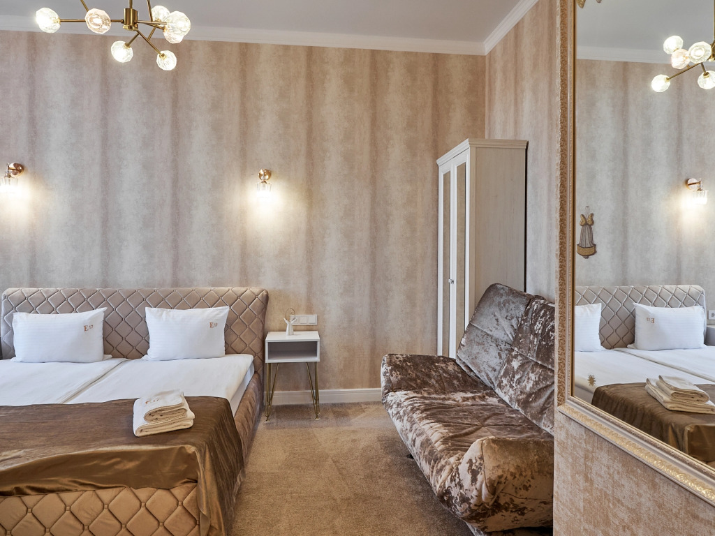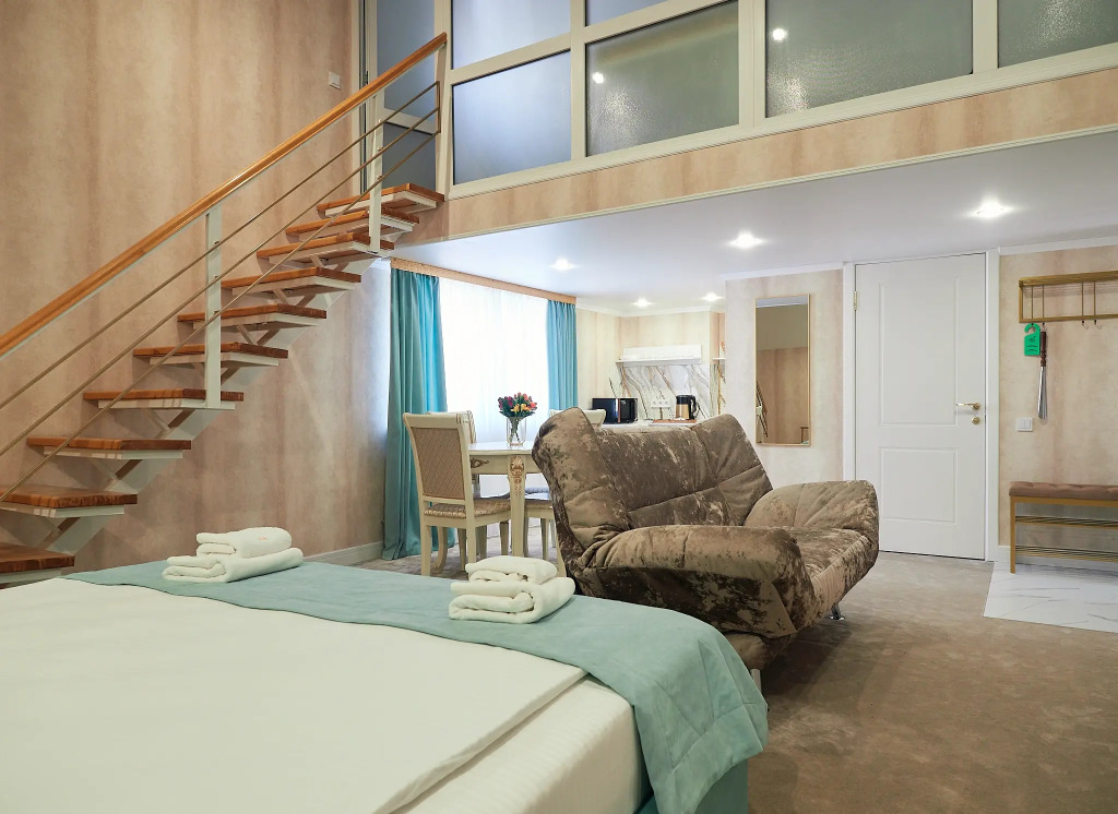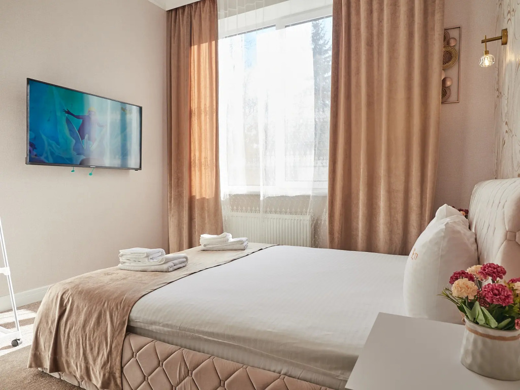 В номере вас будут ждать телевизор и халат. Перечисленные услуги есть не во всех номерах.