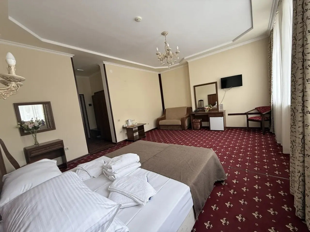 Размещение гостей организовано в бывшей даче графа Шереметьева «Бель-Вью». Архитектура здания относится к концу XIX века. Территория озеленена, имеются различные виды деревьев, расставлены скамейки. Предлагается 3-разовое диетическое питание по системе «меню-заказ» с элементами шведского стола. По предварительной заявке возможна разработка индивидуального меню. В рацион входят рыба, мясо, птица халяль, овощи, фрукты, соки, зелень, молочные продукты от местного производителя. Основной лечебный профиль — профилактика и лечение сердечно-сосудистых, бронхолёгочных заболеваний и функциональных нарушений нервной системы.